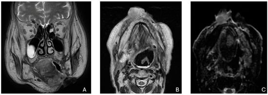 However, reirradiation, with or without concomitant chemotherapy, may be a valid alternative, and indeed, several studies report 5-year OS rates of around 15–38% [27,49,50] despite being burdened by higher toxicity, such as soft tissue necrosis, nerve damage, trismus, risk of carotid blow-out, dysphagia, etc. [51,52] (Figure 1).