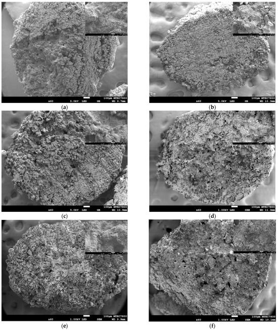 Surface and core microstructures of the sample were carried out using a scanning electron microscope (SEM, JEOL JSM-7800F Prime, Akishima, Japan) at an accelerating voltage of 1 kV. Prior to SEM observation, samples were dried at 80 °C for 24 h and gold-sputtered under a vacuum to prevent overcharging and improve conductivity.