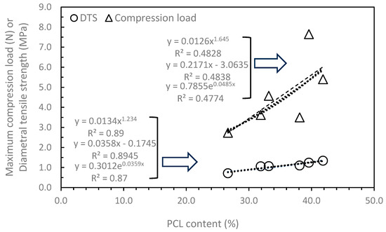 48]. When replotting PCL content, which corresponds to the density of 3DP HA/PCL as a function of compression load or DTS, as shown in