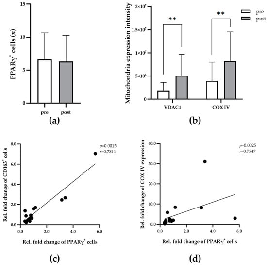3.3. The Number of PPARγ+ Macrophages Is Independent of Adipokines/Chemokines Expression