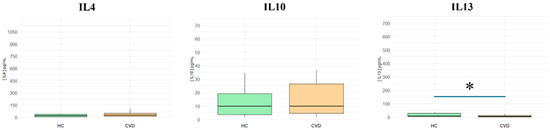 3.2. Serum of Patients with Chronic Venous Disease Displays a Marked Decreased Level of the Anti-Inflammatory Cytokine IL-13