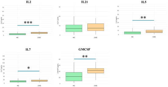 3.3. Serum of Patients with Chronic Venous Disease Exhibits Raised Levels of Cytokines Related to Immune Cell Growth and Differentiation