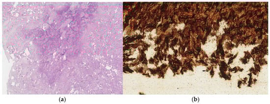 In the cross-section view, small ischemic foci were observed. The fetal part was with no visible changes. Microscopically, the necrosis of chorionic villi was confirmed. In the chorionic plate, umbilical cord, and amniotic sac, polymorphonuclear leukocyte infiltration was abundant. Spirochetes were detected in the umbilical cord stroma by the Warthin–Starry method (Figure 3).