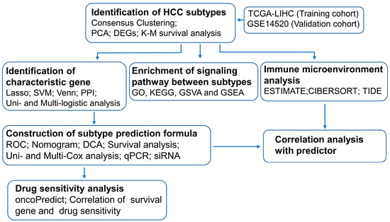 In summary, we developed a method to classify HCC patients into two subtypes based on their overall gene expression profiles, which show differences in enriched pathways, the immune microenvironment, and drug sensitivity. This provides a basis for developing more personalized HCC therapeutic strategies.