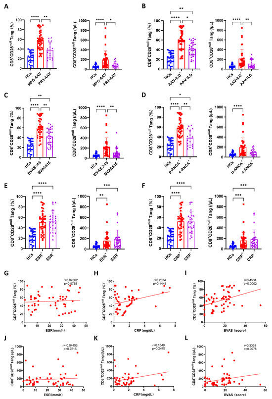 3.2. Correlation Analysis of CD8+CD28null Tang and Clinical Features of AAV Patients