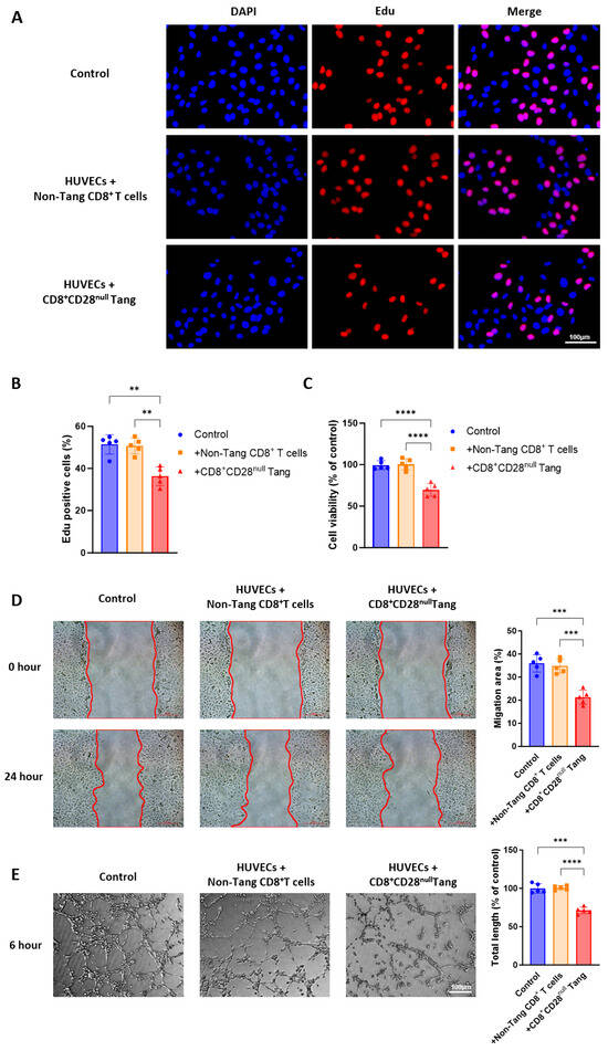 3.6. CD8+CD28null Tang Cells Inhibit HUVEC Proliferation, Migration, and Tube Formation