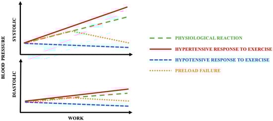 In healthy people, systolic blood pressure (SBP) physiologically increases gradually with increasing exercise intensity, while diastolic blood pressure (DBP) may change only slightly or even fall during exercise [6].