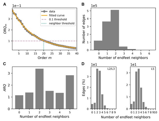 where is the set of all edges of distance order, m, from a target edge, k. The most interior average was calculated over the elements of . The average in the middle was calculated over all edges, k, connected to endfeet. And, finally, the last average was calculated over all time points, n.