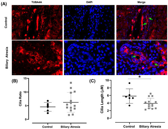 Chicago/Turabian StyleQuelhas, Patrícia, Rui Oliveira, Carlos Kieling, Sandra Vieira, and Jorge dos Santos. 2025. "Structural Disruption of Cilia and Increased Cytoplasmic Tubulin in Biliary Atresia—An Exploratory Study Focusing on Early Postoperative Prognosis Following Portoenterostomy" Biomedicines 13, no. 1: 87. https://doi.org/10.3390/biomedicines13010087