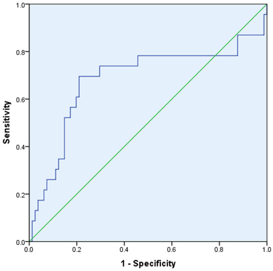 The ROC curve analysis, evaluating the relationship between NT-proBNP reduction and ∆ePVS, demonstrated a moderate predictive value with an AUC of 0.682 (95% CI 0.533–0.830, p = 0.008) (Figure 3).