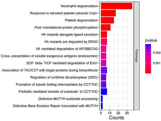 Reactome pathways were identified by 373 differentially abundant proteins. Pathways are listed according to their p-values and gene counts.