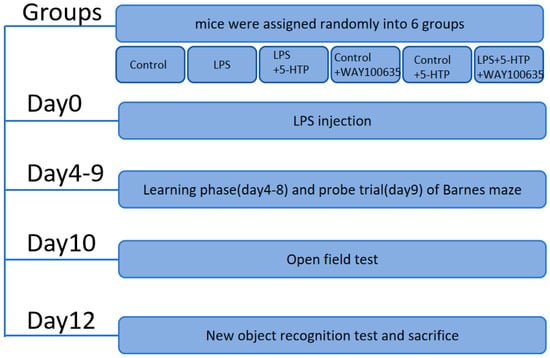 Lipopolysaccharide (LPS) was purchased from Sigma-Aldrich (St. Louis, MO, USA). 5-Hydroxytryptophan (5-HTP) was obtained from MeilunBio (Dalian, China). WAY100635 was sourced from MedChemExpress LLC (Monmouth Junction, NJ, USA). LPS, 5-HTP, and WAY100635 were each dissolved in 0.9% saline (vehicle) and administered via intraperitoneal (i.p.) injection.