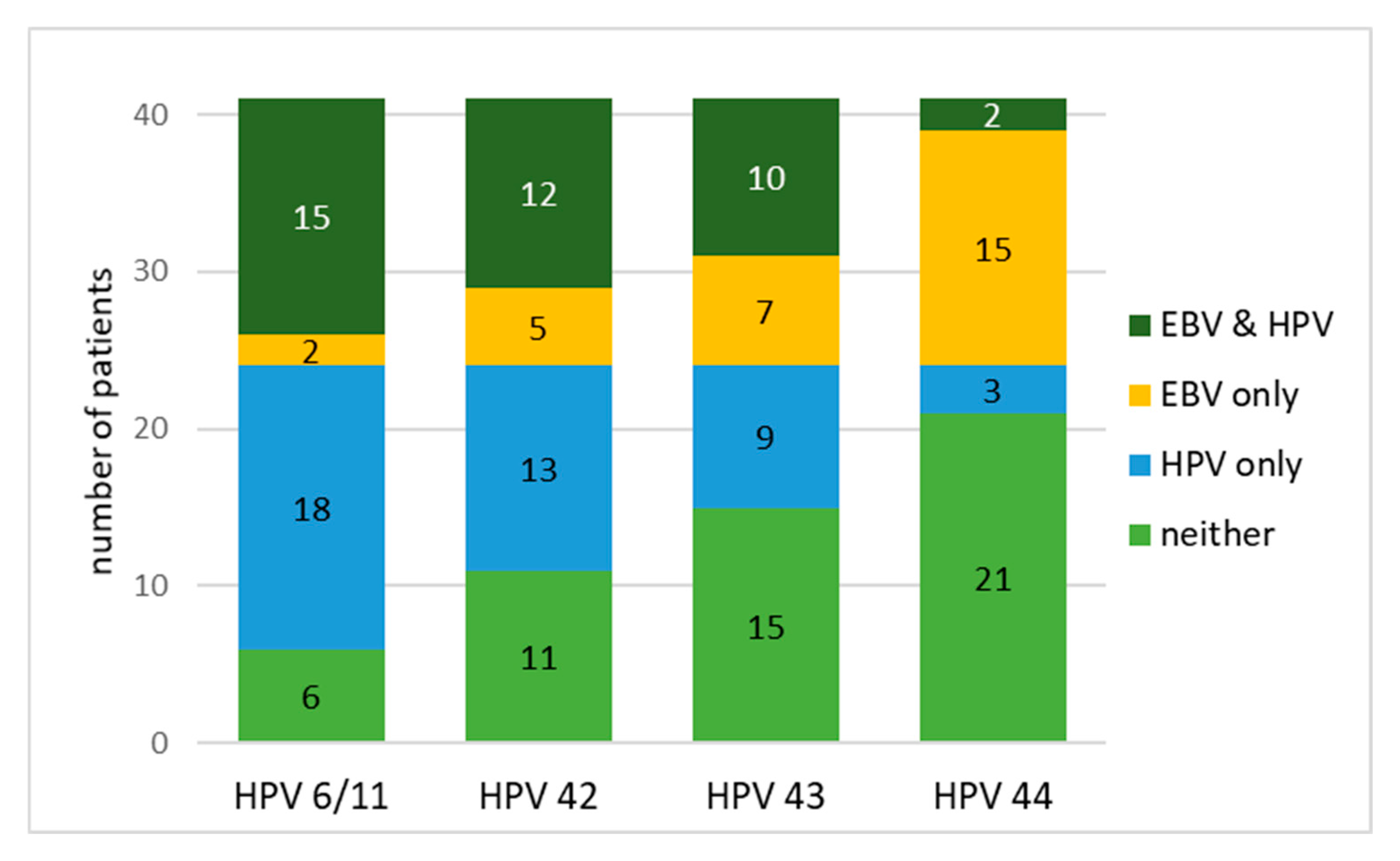 | EBV and HPV | 36.6% | 29.3% | 24.4% | 4.9% |