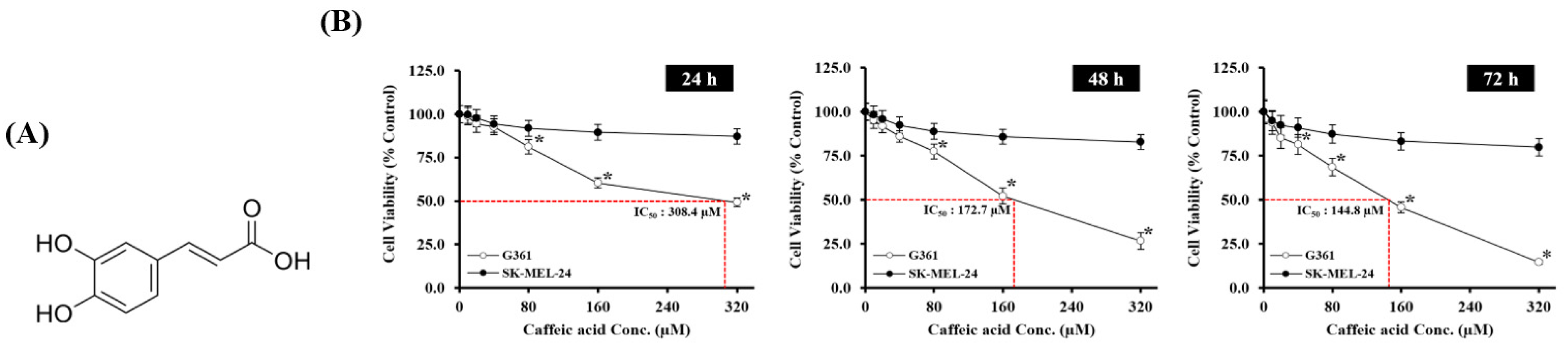 3.2. Cytotoxic Effects of Caffeic Acid Treatment on Human Melanoma Cells
