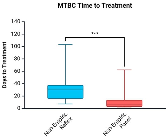| Days to Treatment, Non-Empiric Only | 31 (25, 7–103) | 5.5 (29, 2–62) | 25.5 | p < 0.001 |