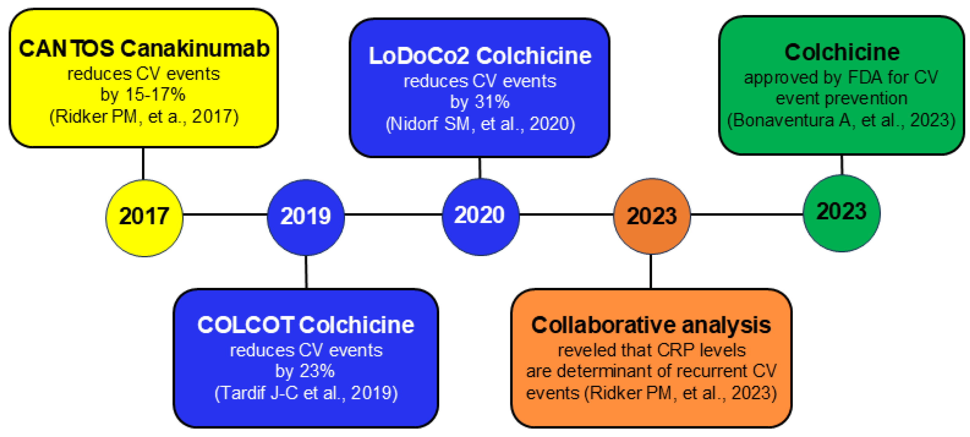 - Arboleda, V.; Hackworth, A.; Bonnice, S.; Gonzalez, V.; Cabrera, D.; Colletti, C.; Baxter, C.; Aleman Oliva, C.; Kabir, S.; Huang, J.; et al. The role of aspirin, statins, colchicine, and IL-1 inhibitors in prevention of cardiovascular events: A systematic integrative review. J. Osteopath. Med. 2024, 124, 97–106. [Google Scholar] [CrossRef] [PubMed]