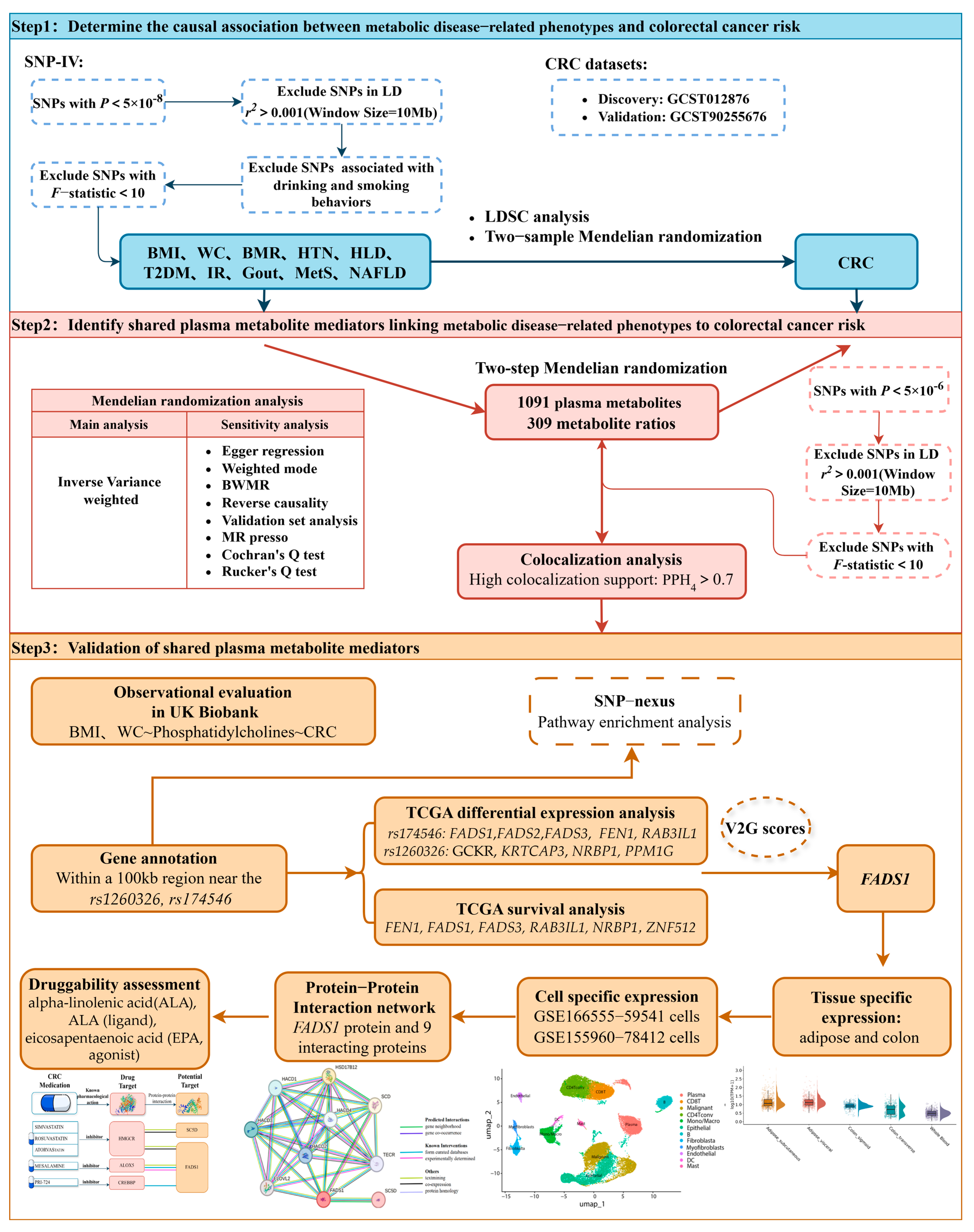 Shi, X.; Tang, Y.; Zhang, Y.; Cheng, Y.; Ma, Y.; Yan, F.; Liu, T. Shared Plasma Metabolites Mediate Causal Effects of Metabolic Diseases on Colorectal Cancer: A Two-Step Mendelian Randomization Study. Biomedicines 2025, 13, 2433. https://doi.org/10.3390/biomedicines13102433