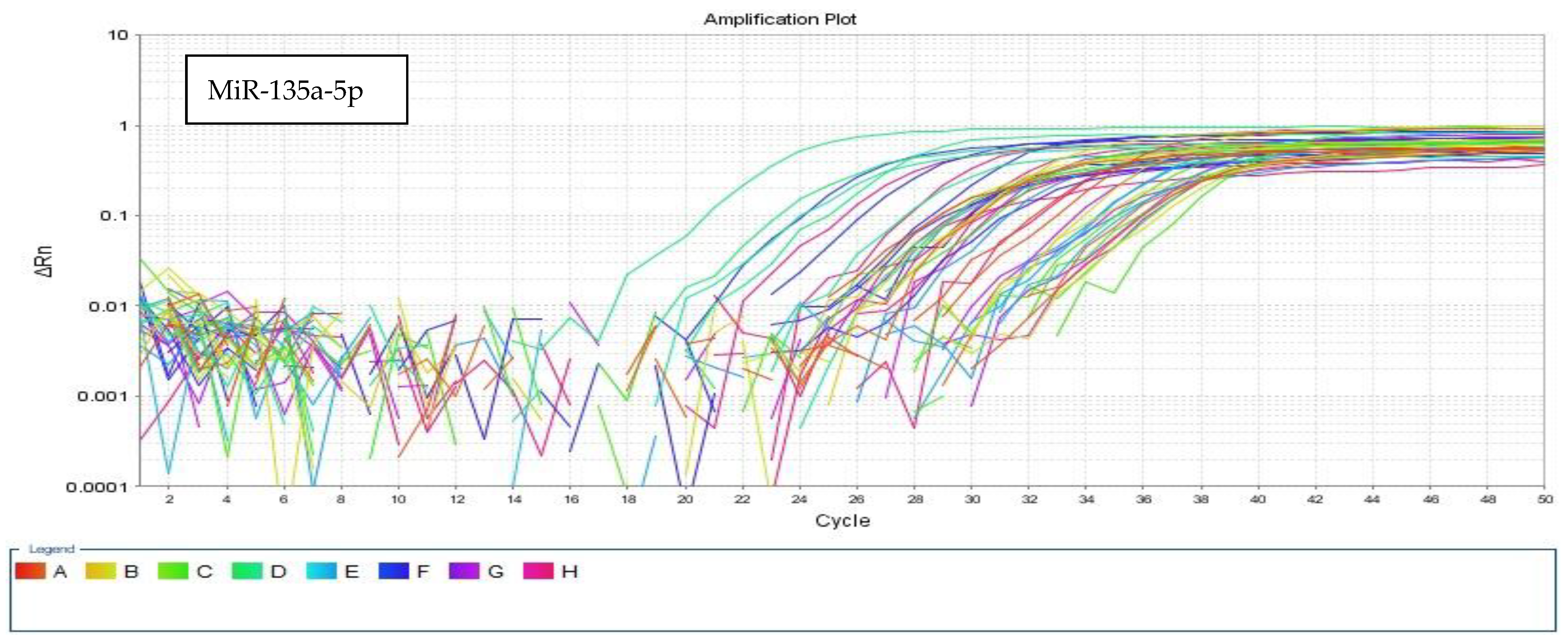 miR-135a-5p Blood | 16.33 ± 25.31 3.15(0.80–60.12) | 9.11 ± 12.3 4.82(0.8–60.12) | 160.50 | 0.669 |