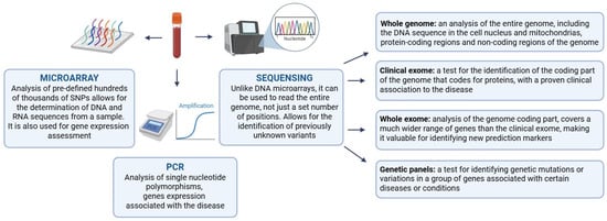 Therefore, refining genetic risk scores for T1D development remains a pressing issue. Accounting for ethnic differences is among the most apparent routes for progress in this field. However, it should be remembered that methods of varying information volume are used to assess the contribution of innate factors: from examining targeted gene activity in high-risk patients to whole genome sequencing (Figure 1). The exome and genome analysis is preferable for research purposes to identify new significant polymorphisms. Due to high costs, these methods are difficult to apply routinely in clinical practice. Nevertheless, relatively inexpensive tests (DNA microarrays, genetic panels, created for T1D predisposition screening) can be applied in clinical diagnostic practice, based on the identified pathogenetically significant SNPs. In addition to direct risk assessment, genetic testing may predict the age of T1D onset. Accordingly, after risk estimation, an individual monitoring strategy can be offered and a therapeutic window for pathogenetic therapy identified. Integrating and identifying polymorphisms associated with specific age of onset will greatly improve the utility of risk scores and increase the effectiveness of early detection and treatment of T1D.