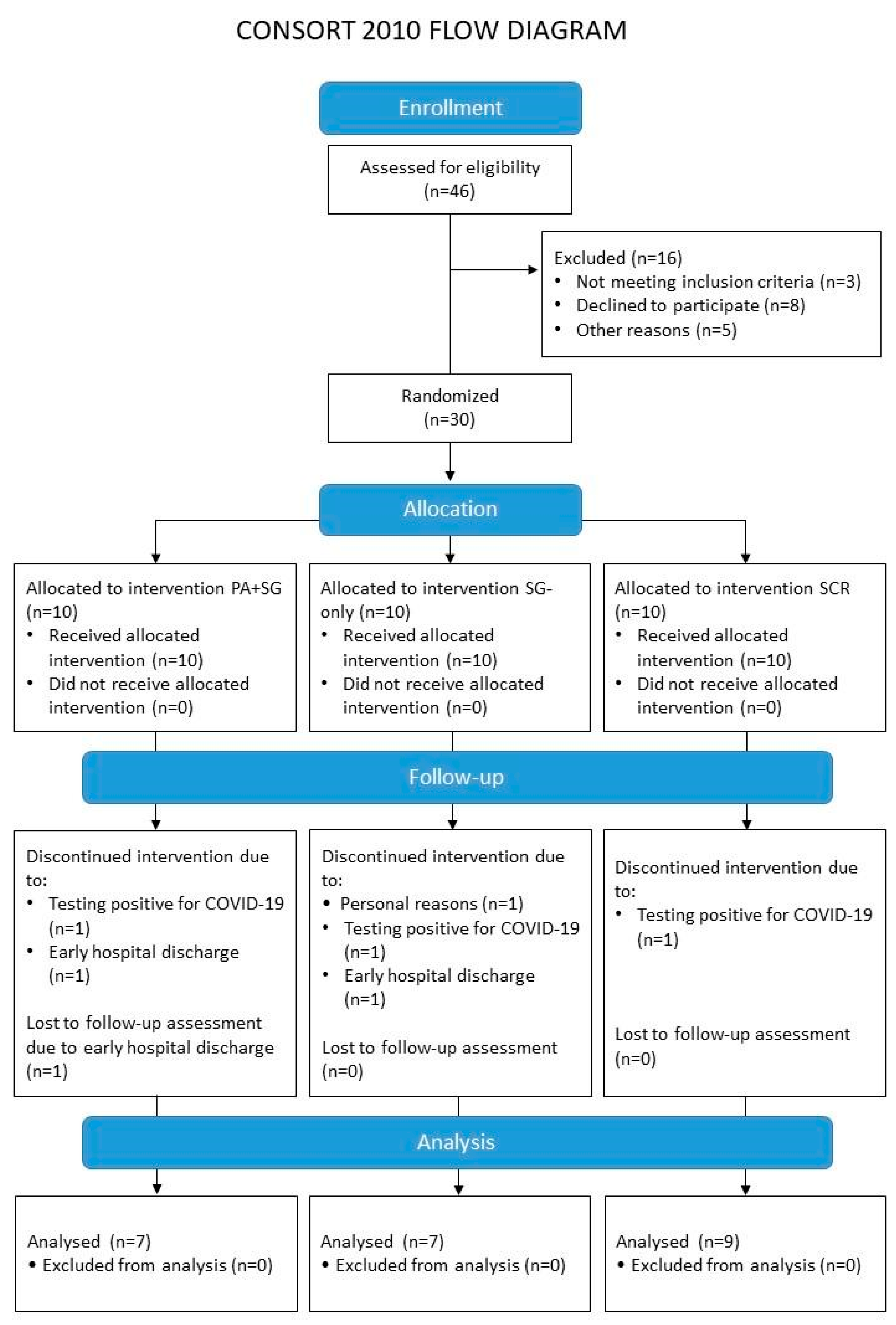 Characteristics | Whole Sample (n = 23) | PA+SG (n = 7) | SG-Only (n = 7) | SCR (n = 9) | H/X2 (p-Value) |