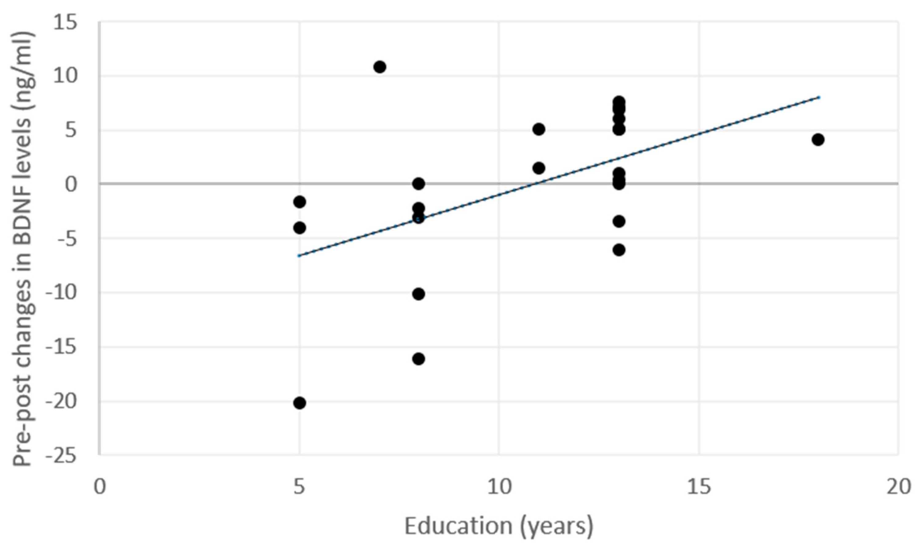 3.3. Association Between Changes in BDNF Serum Levels, Demographic Characteristics, and Cognitive Performances