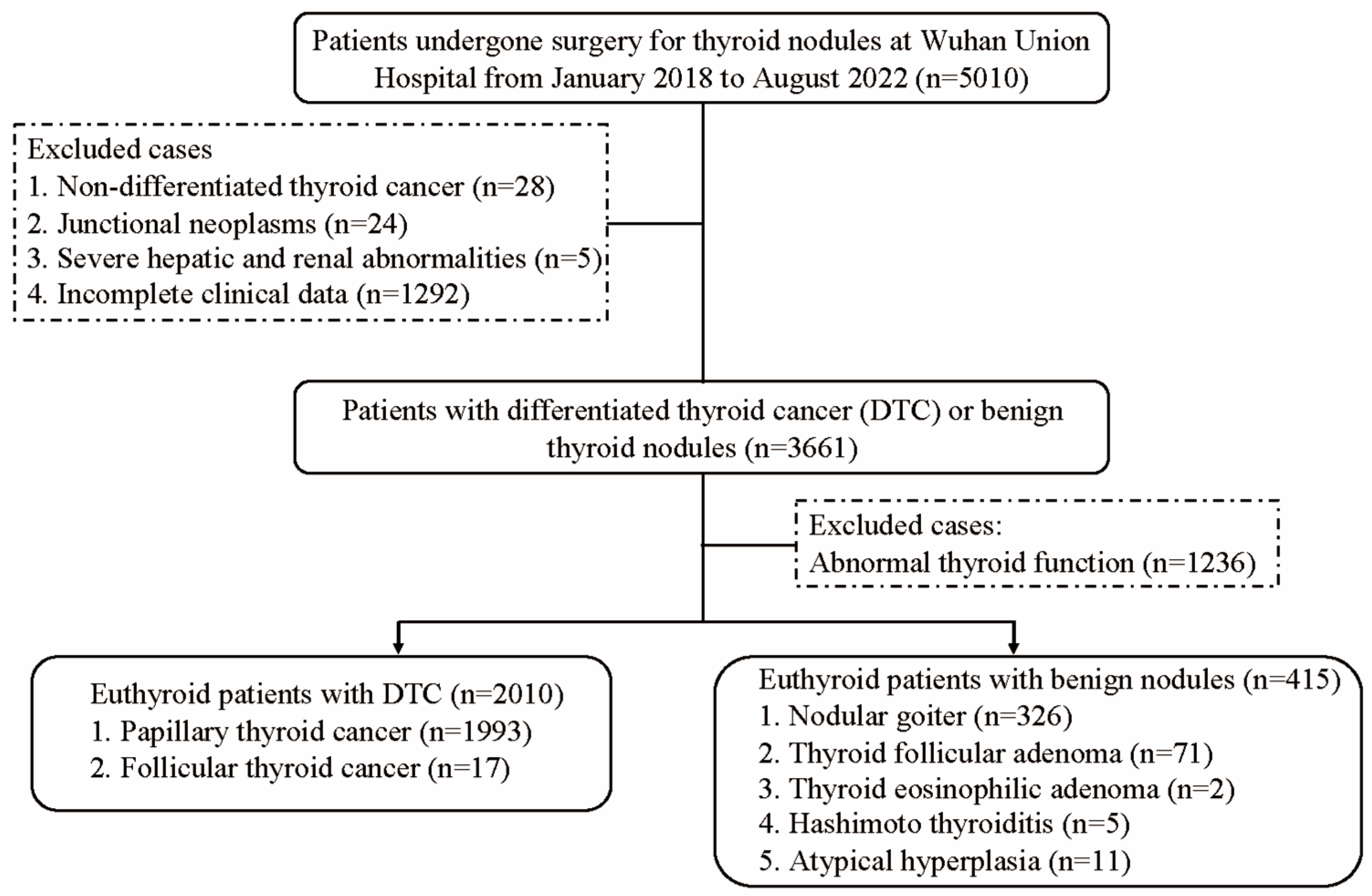 APA StyleYu, L., Wang, H., Chen, X., Zhang, Y., Liu, J., Chen, Y., Yu, Y., Wang, S., Wang, Y., Wang, Z., Xie, L., & Sun, H. (2025). Differential Association of Serum TSH with Differentiated Thyroid Cancer Risk by Autoimmune Thyroiditis Status. Biomedicines, 13(10), 2451. https://doi.org/10.3390/biomedicines13102451