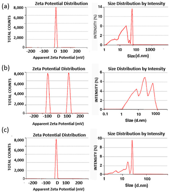 Hydrodynamic diameter and zeta potential were measured using a Malvern Zetasizer (MalvernPanalytical Inc., Malvern, Worcestershire, UK). Samples were filtered through a 0.20 μm PES syringe filter, dispersed in deionized water, and sonicated for 15 min prior to measurement.