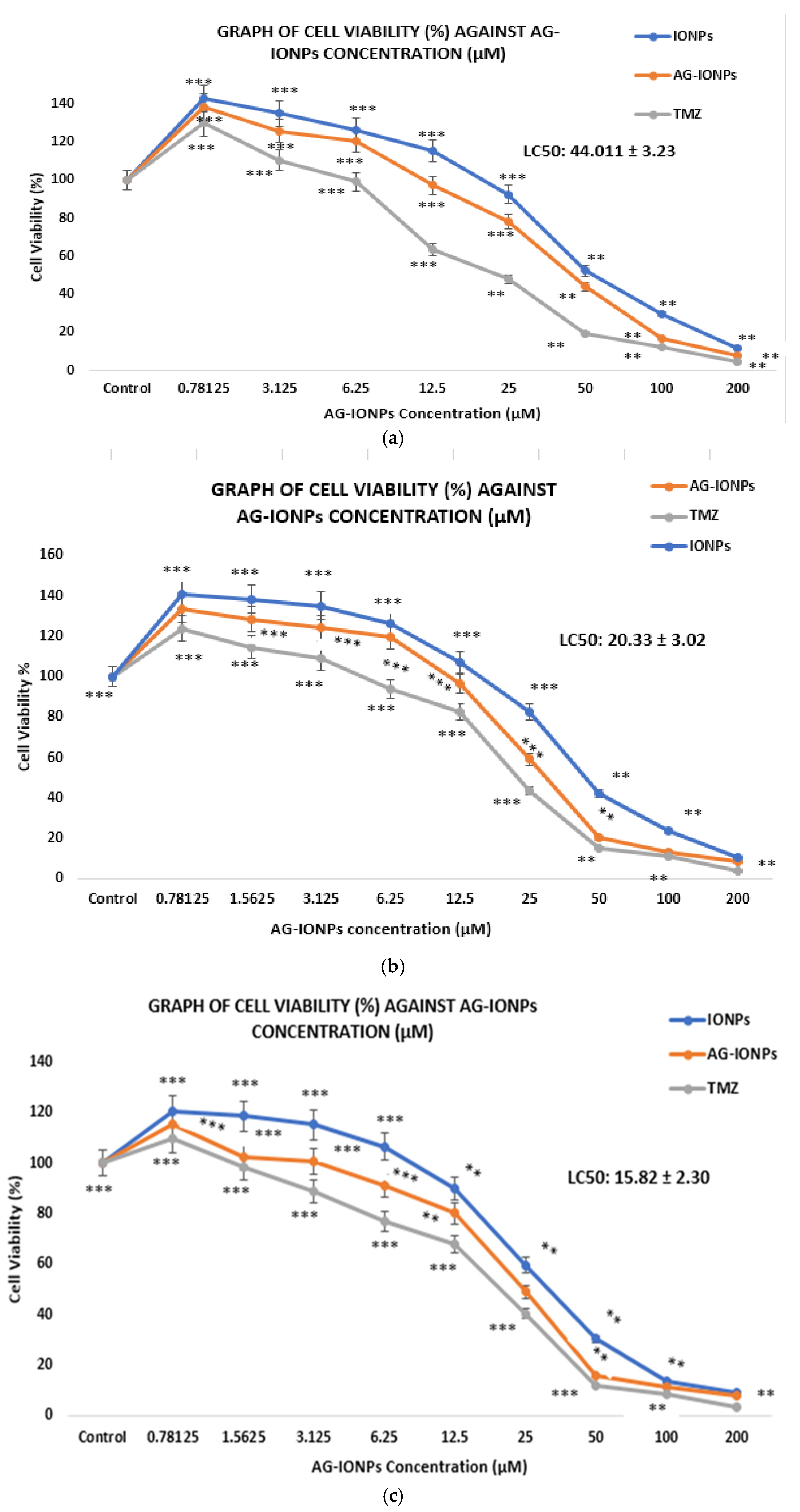 Time Frame | AGIONPs (µg/mL) | TMZ (µg/mL) |