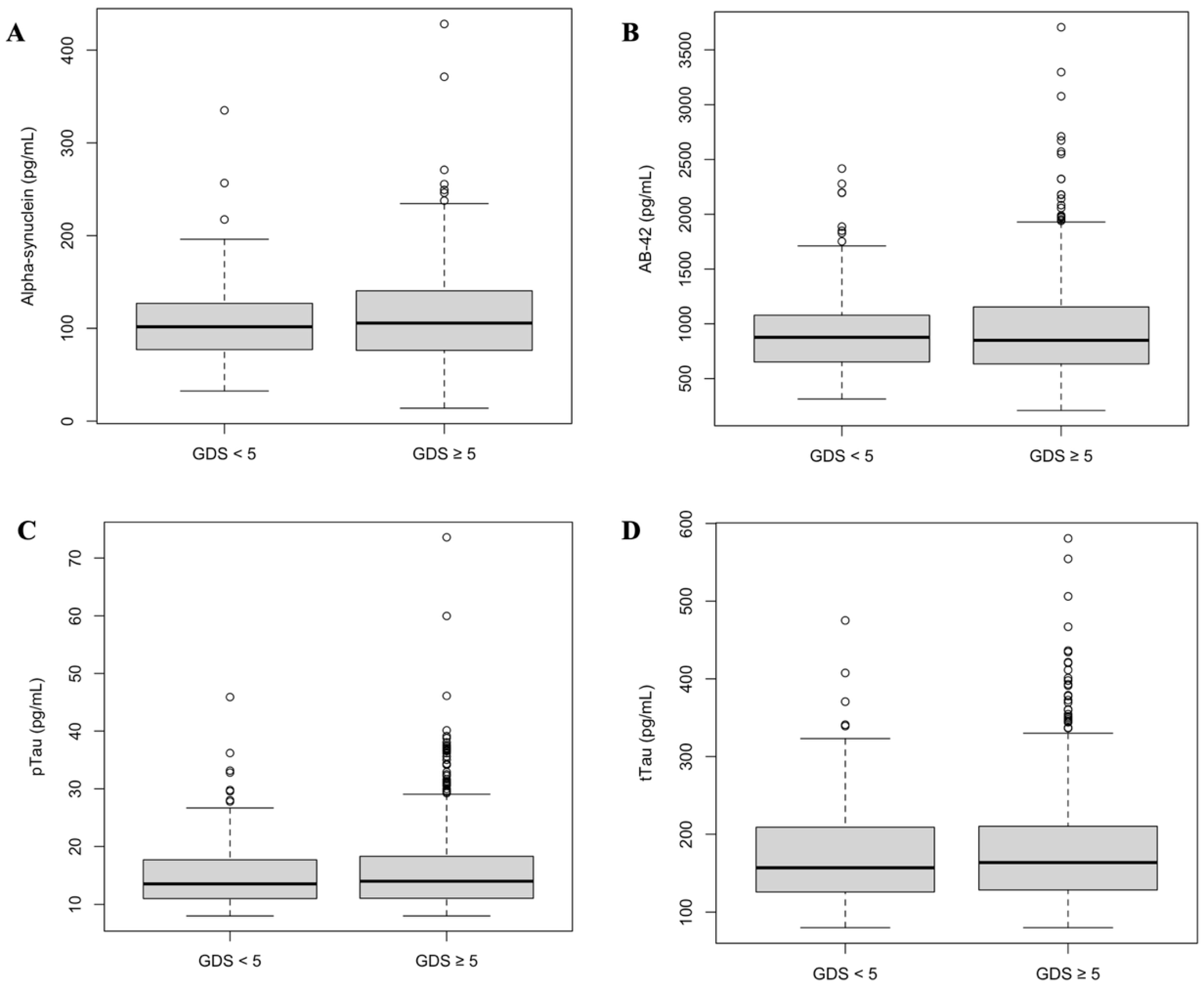 Alpha-synuclein | 100.62 (±47.0) | 102.9 (±49.6) | 94.5 (±39.2) | 0.27 |