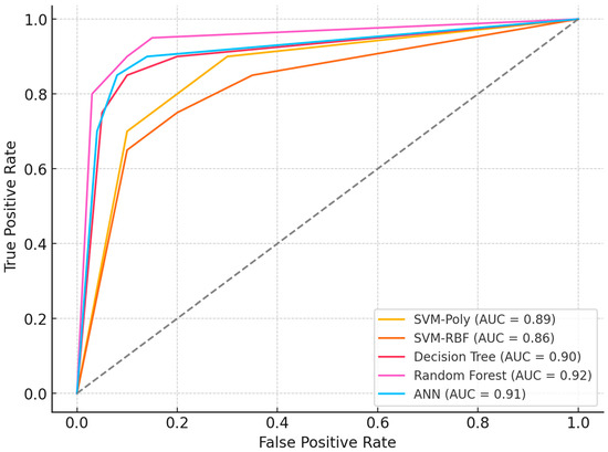The detailed hyperparameters and implementation settings for all machine learning and deep learning algorithms, including SVM (polynomial and RBF), Random Forest, ANN, k-NN, and Stacked Autoencoder (SAE), are summarized in Table 1 [35,36,37].
