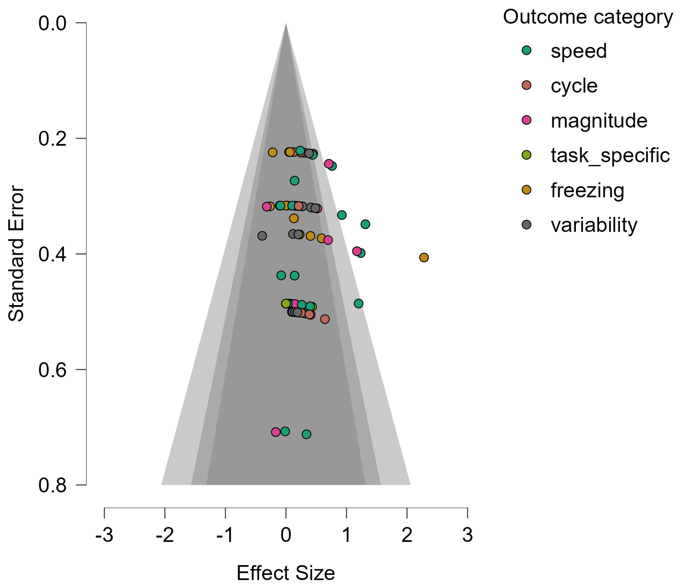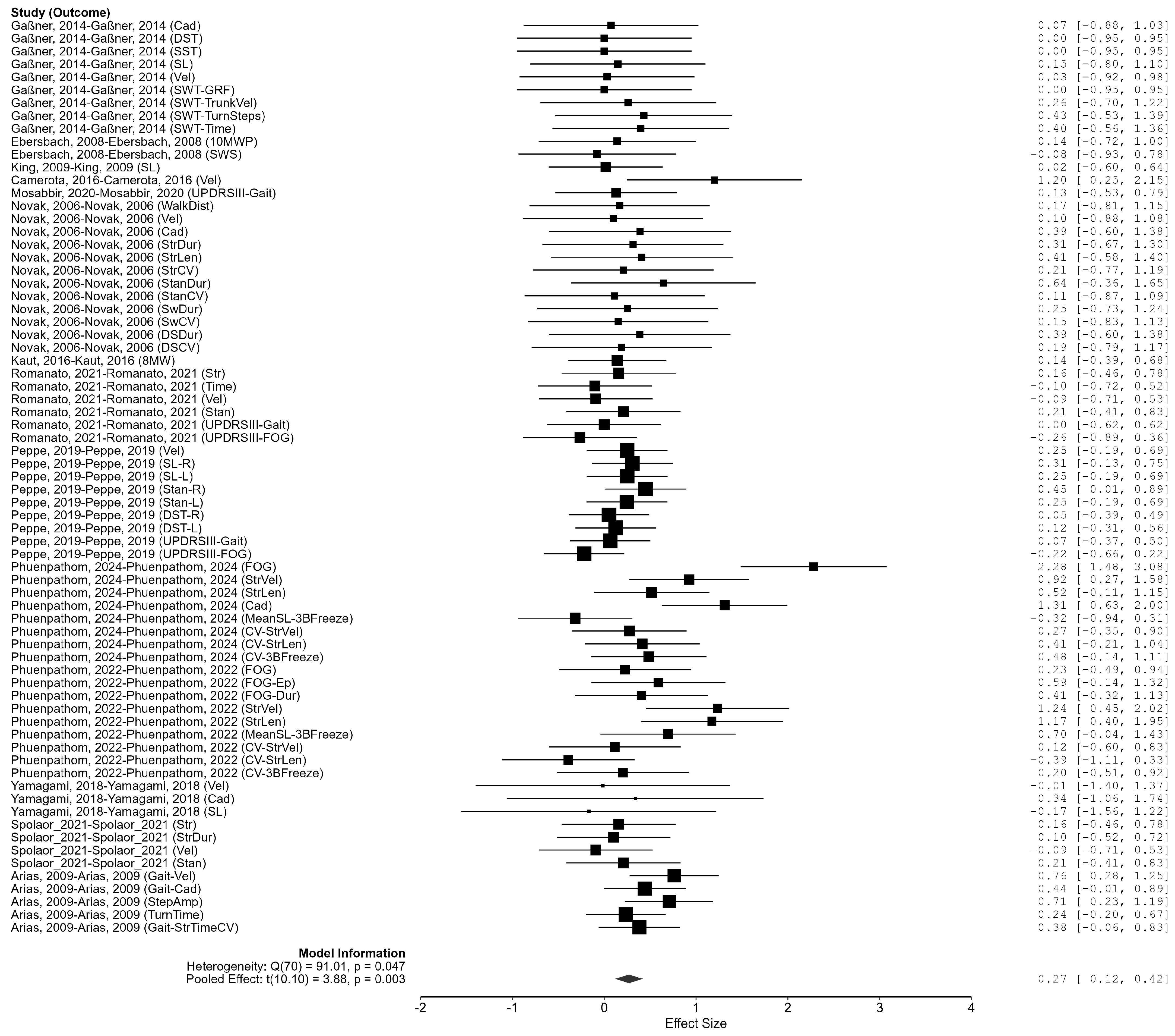 Outcome domain | Speed | 0.361 * | [0.089, 0.633] | [−0.405, 1.127] | Qm(3) = 2.41, 0.491 |