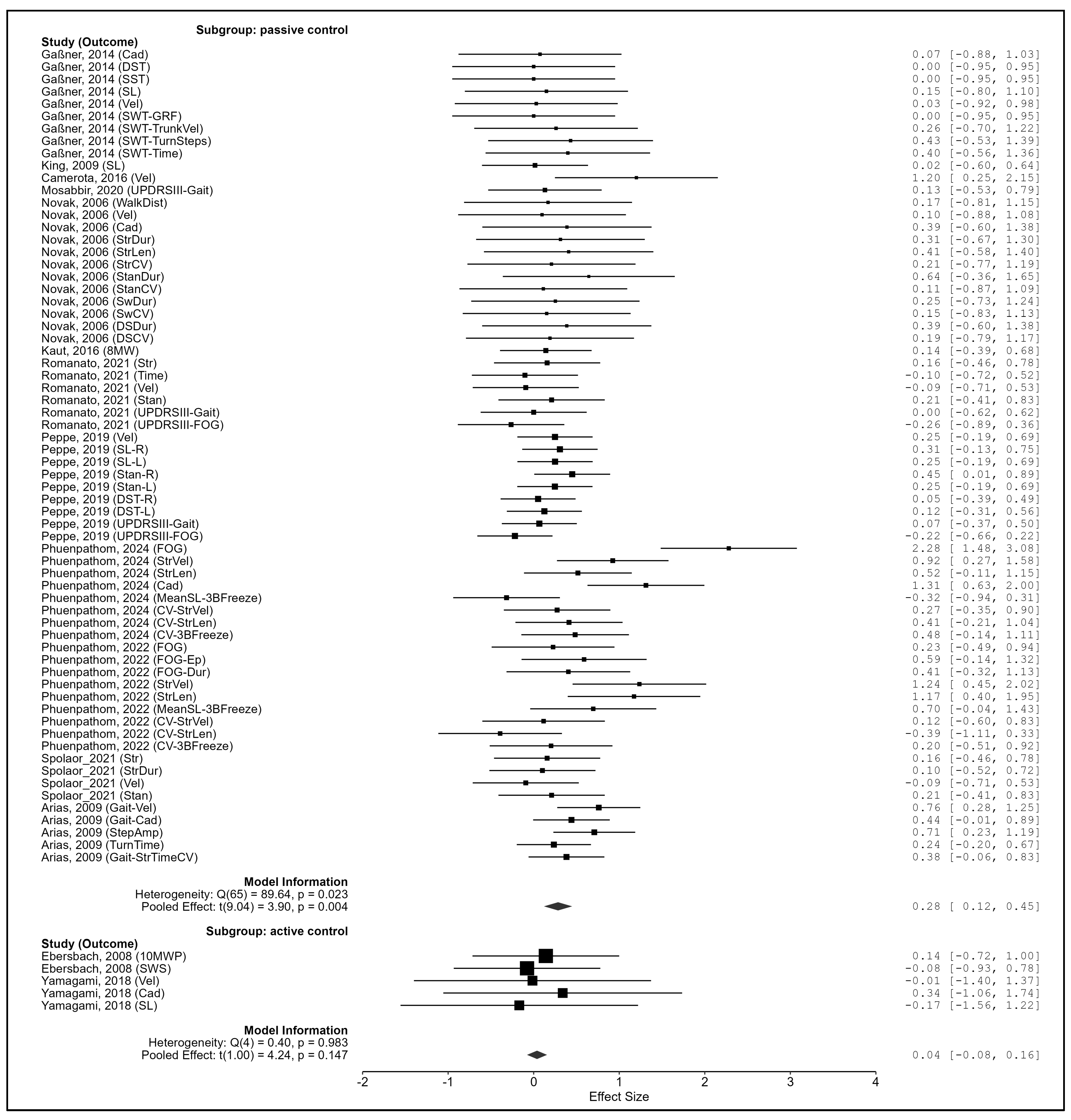 Control type | Passive control | 0.285 ** | [0.120, 0.450] | [−0.185, 0.755] | Qm(1) = 11.13, <0.001 ** |