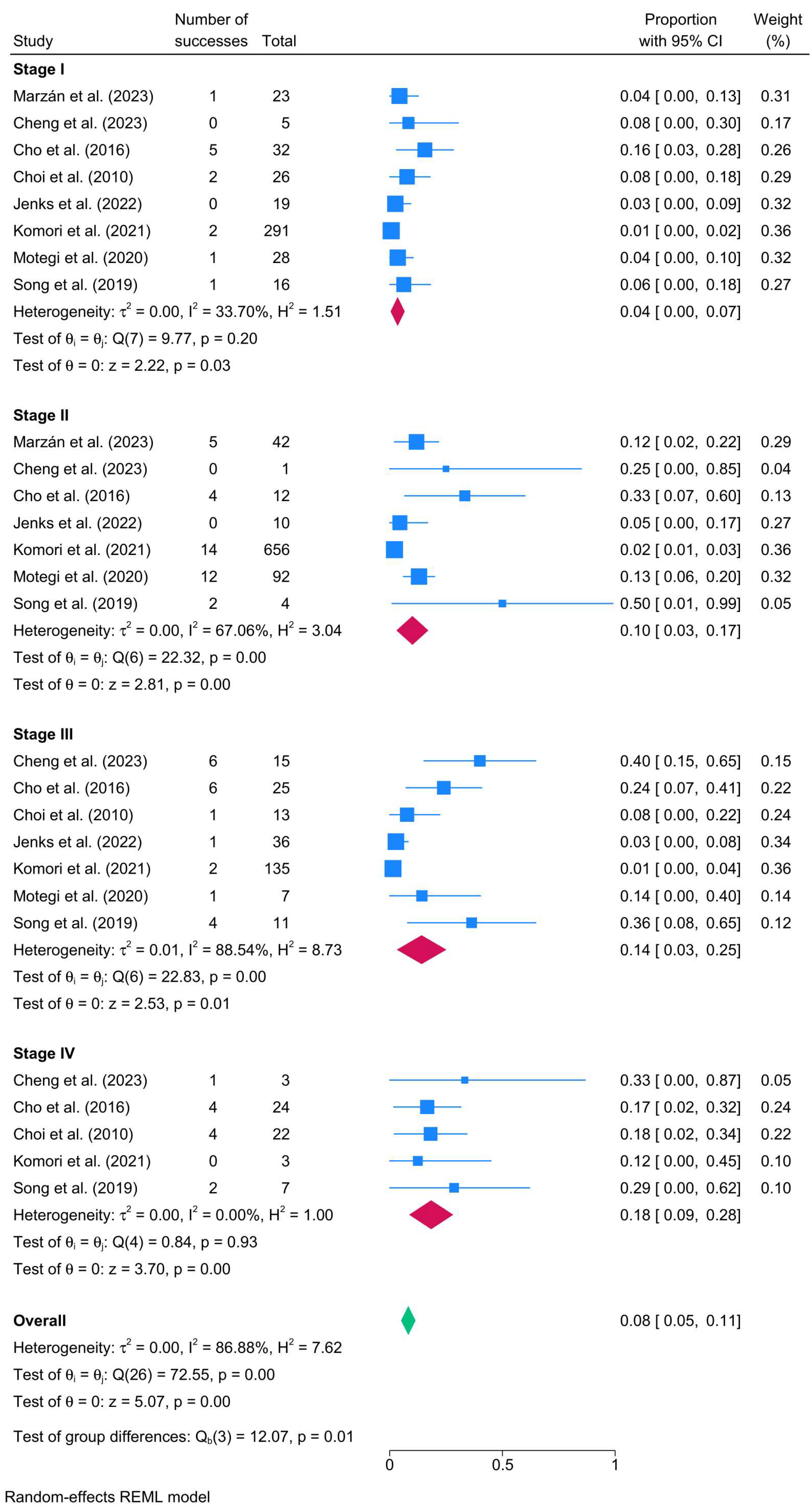 Stage I | 8 | 4% | 0–7% | 33.70% | |