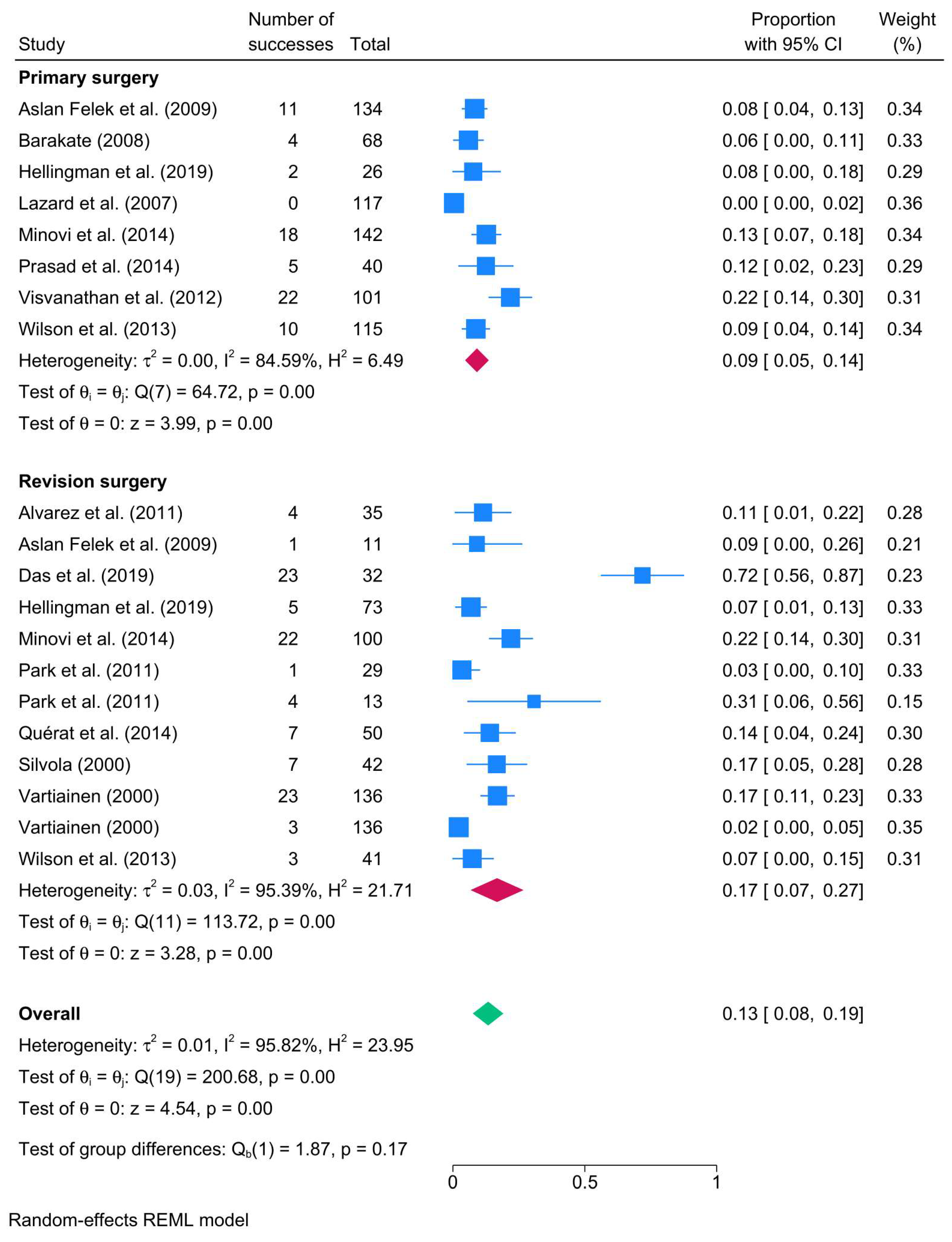 Revision Surgery | 12 | 17% | 7–27% | 95.39% | |