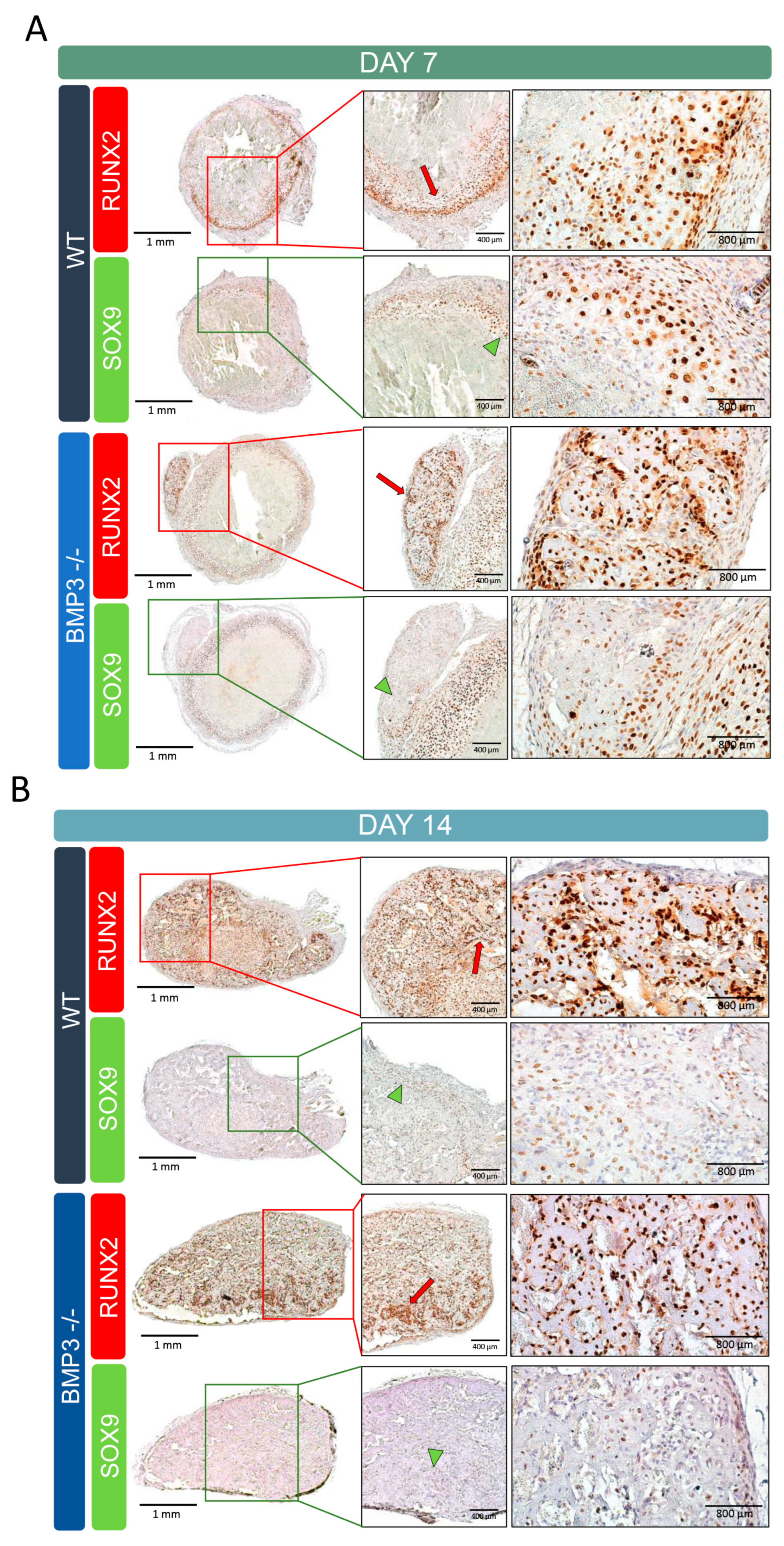 Rumenović, V.; Ivanjko, N.; Kovačić, N.; Vukičević, S.; Erjavec, I. BMP3 Deficiency Accelerates Cartilage-to-Bone Transition in Ectopic Bone. Biomedicines 2025, 13, 2508. https://doi.org/10.3390/biomedicines13102508