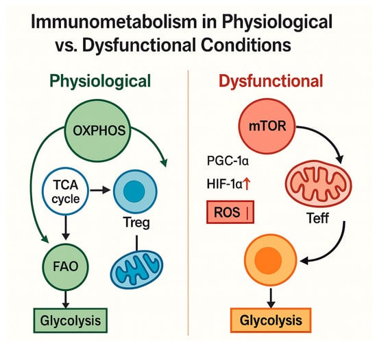 - Park, S.G.; Lee, J.Y.; Seo, H.; Hwang, S.S.; Lee, C.K.; Lee, G.R. Modulation of immune responses by metabolic reprogramming: The key role of immunometabolism. Immune Netw. 2025, 25, e15. [Google Scholar] [CrossRef]