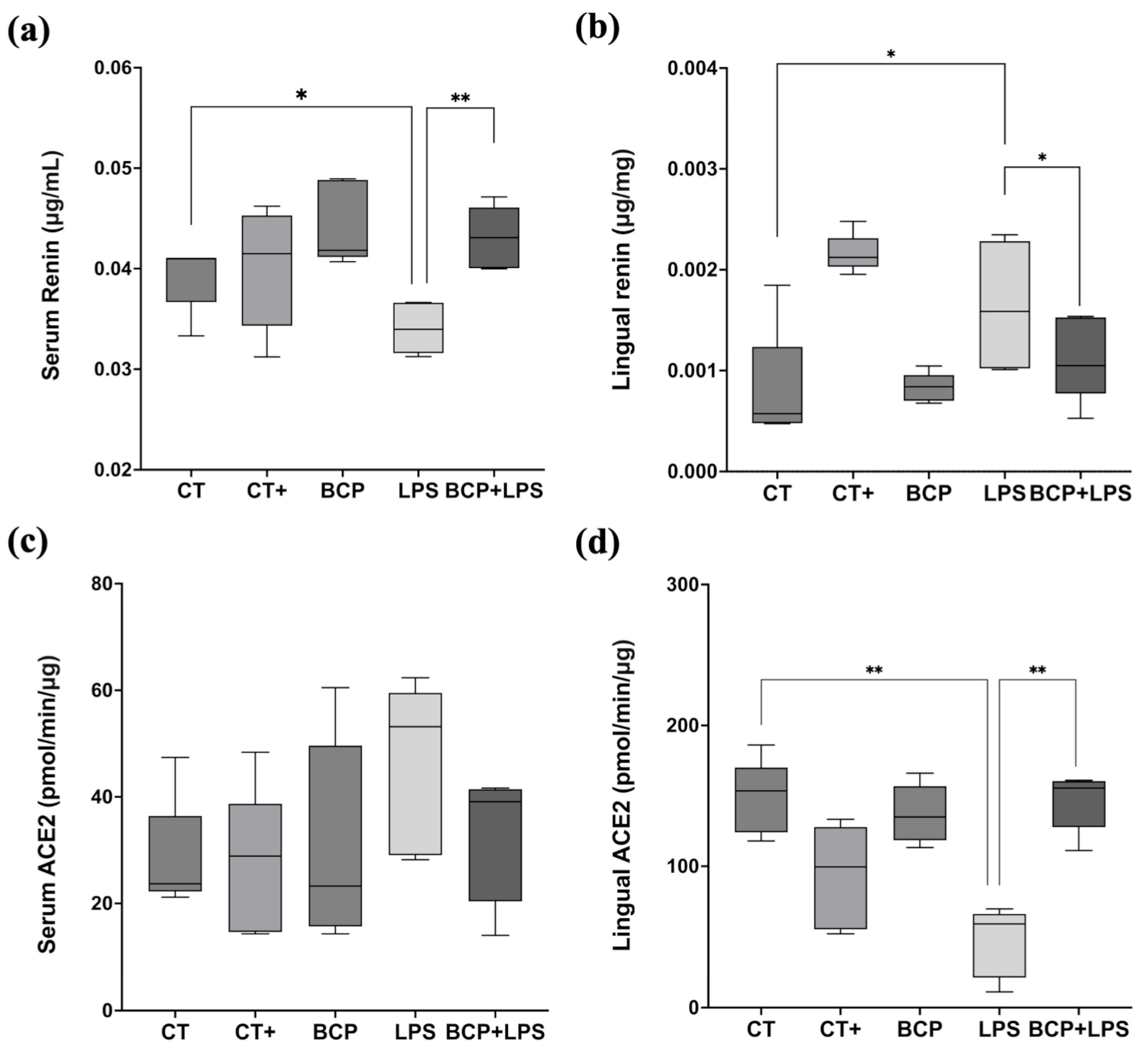 2.7. Determination of the Enzymatic Activity of ACE2 and Renin Concentration