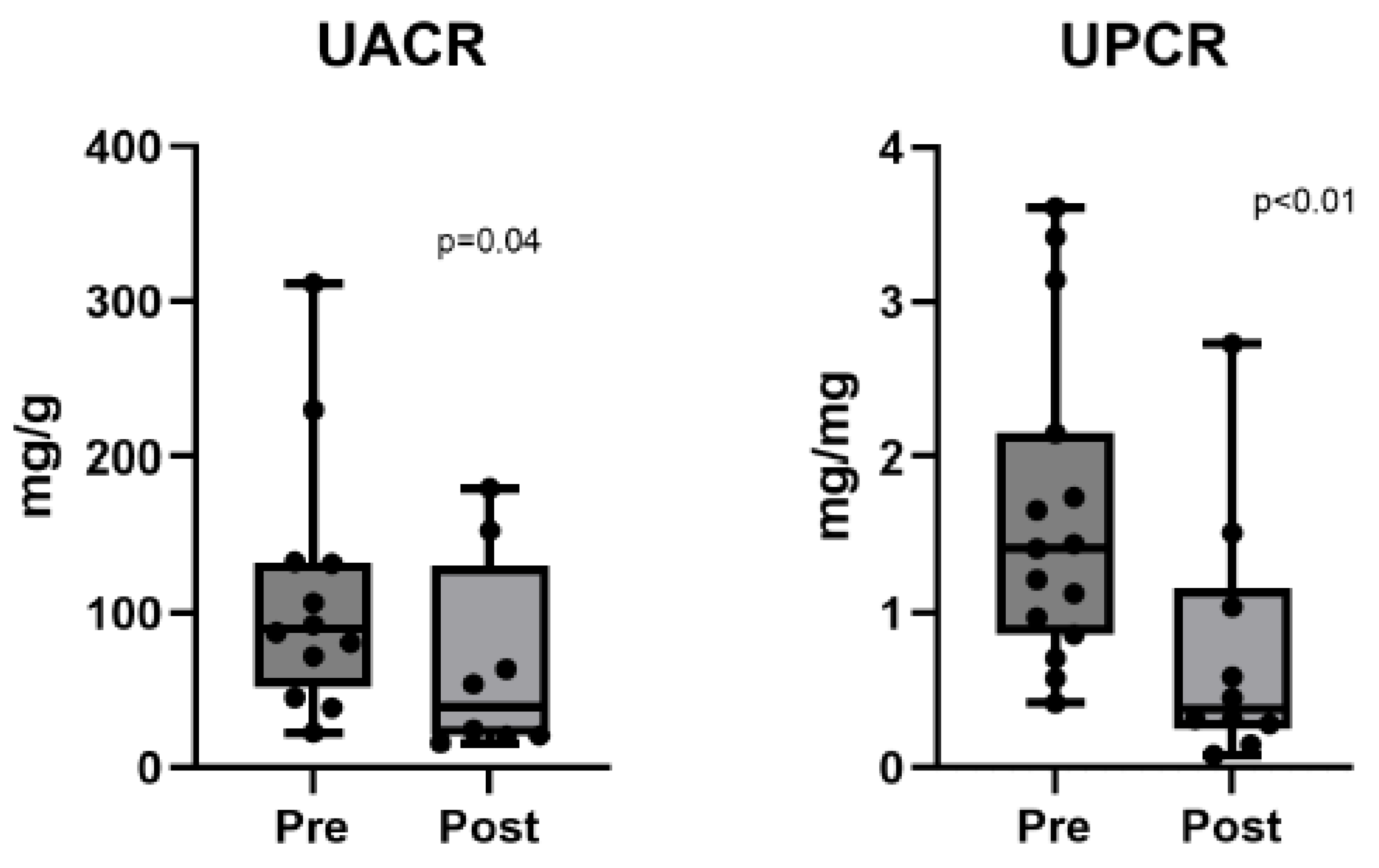 UPCR (n = 10) | 1.4 (0.9–2.2) | 0.4 (0.3–1.0) | <0.01 |