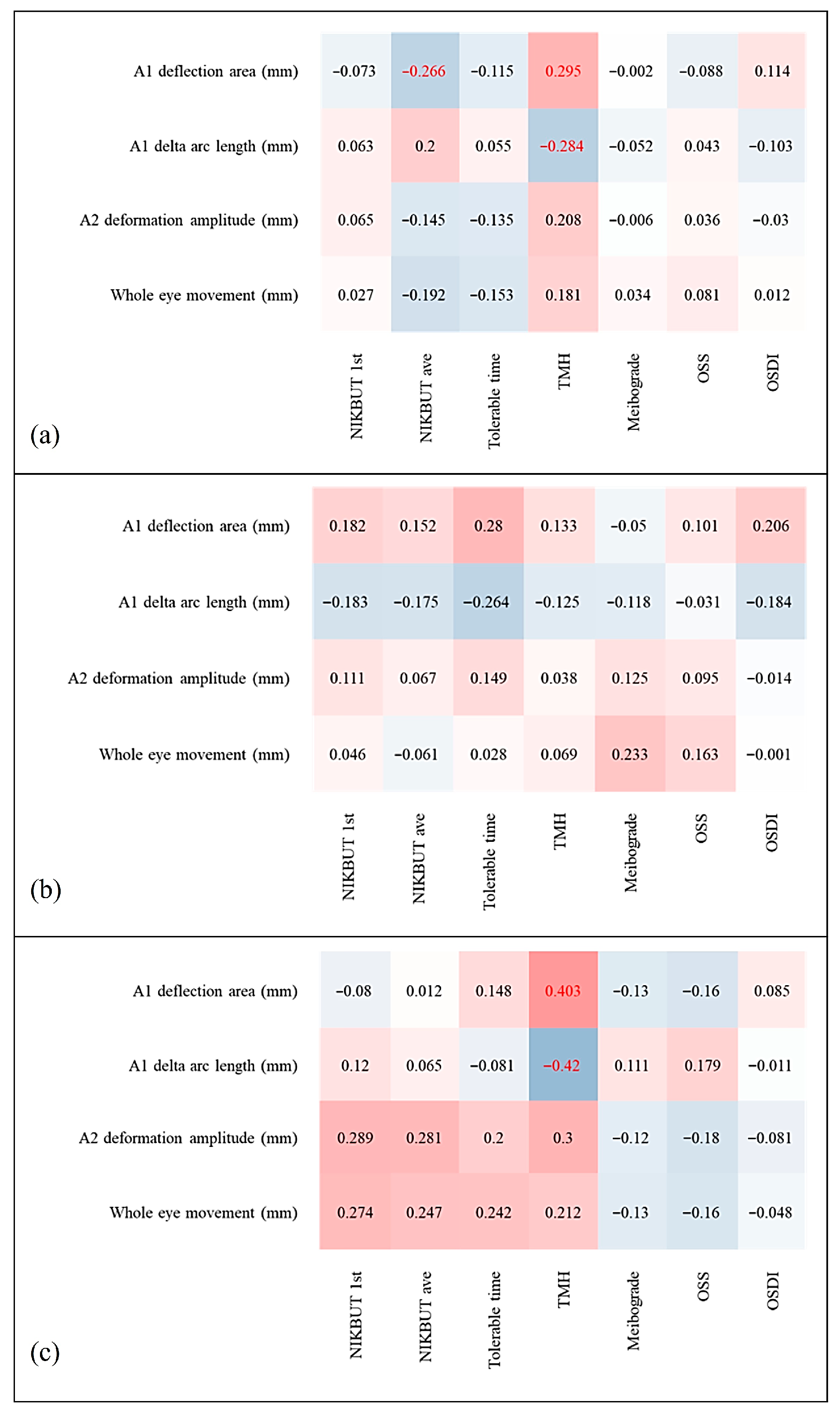 3.3. Relationships of Corvis ST Parameters and Dry Eye Parameters