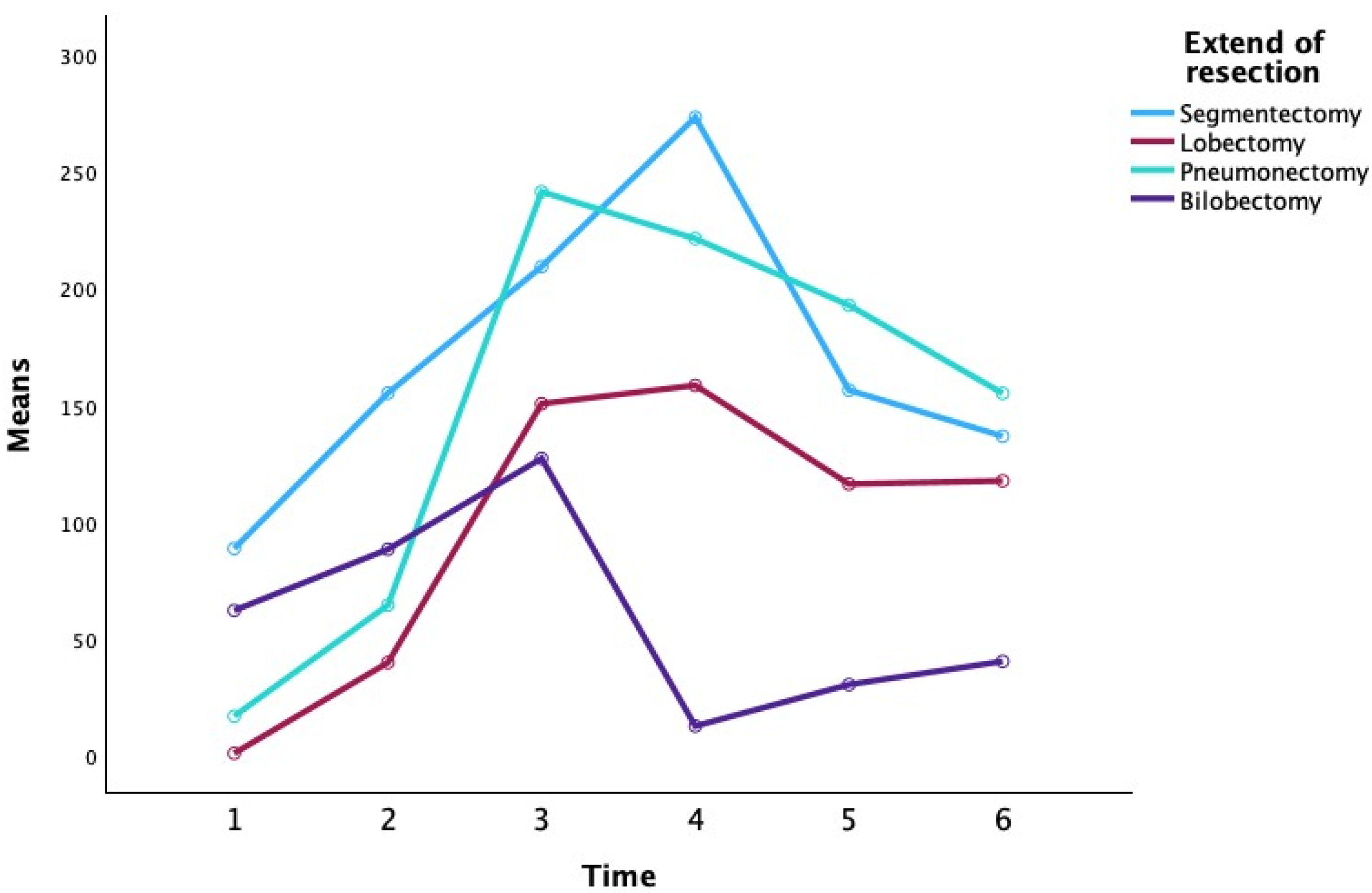Table 4). The interaction between time and extent of resection also failed to reach significance (