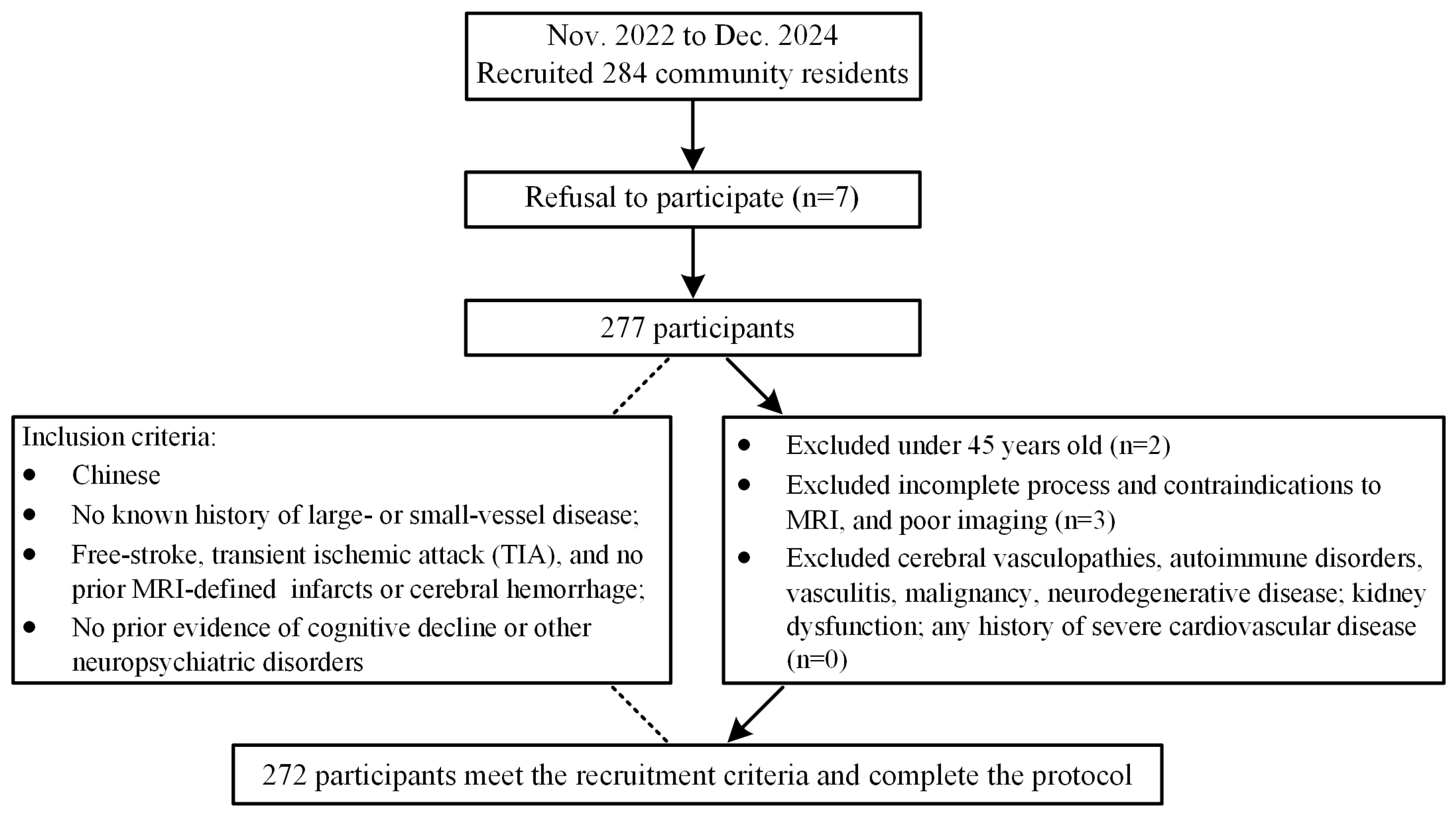 - Ackah, J.A.; Du, H.; Yang, W.; Zeng, H.; Chan, J.T.L.; Lo, M.L.C.; Chen, X. The burden of intracranial atherosclerosis on cerebral small vessel disease: A community cohort study. Ann. Clin. Transl. Neurol. 2025, 12, 1187–1200. [Google Scholar] [CrossRef] [PubMed]