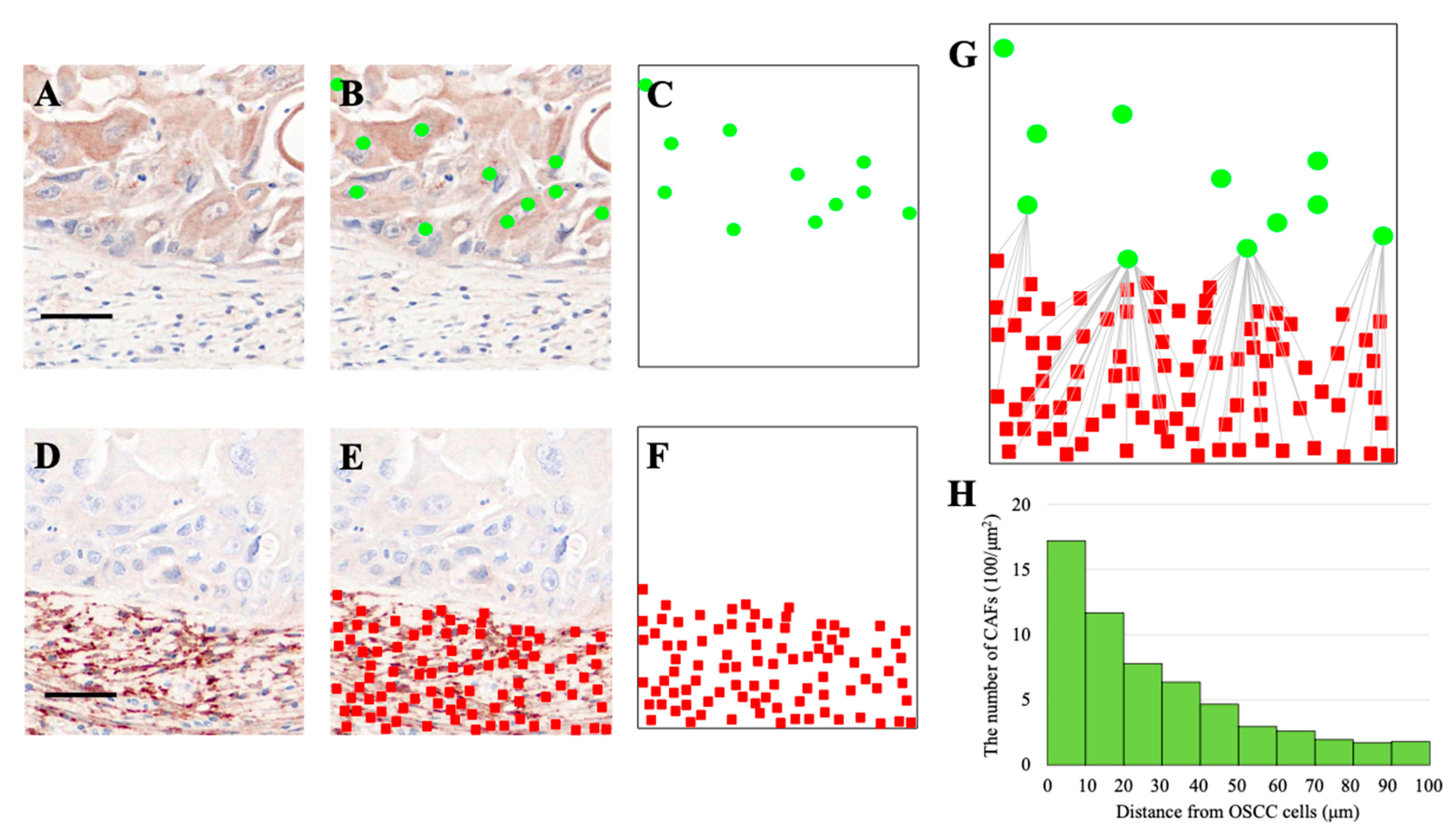 3.3. Spatial Distribution of CAFs Relative to OSCC Cells
