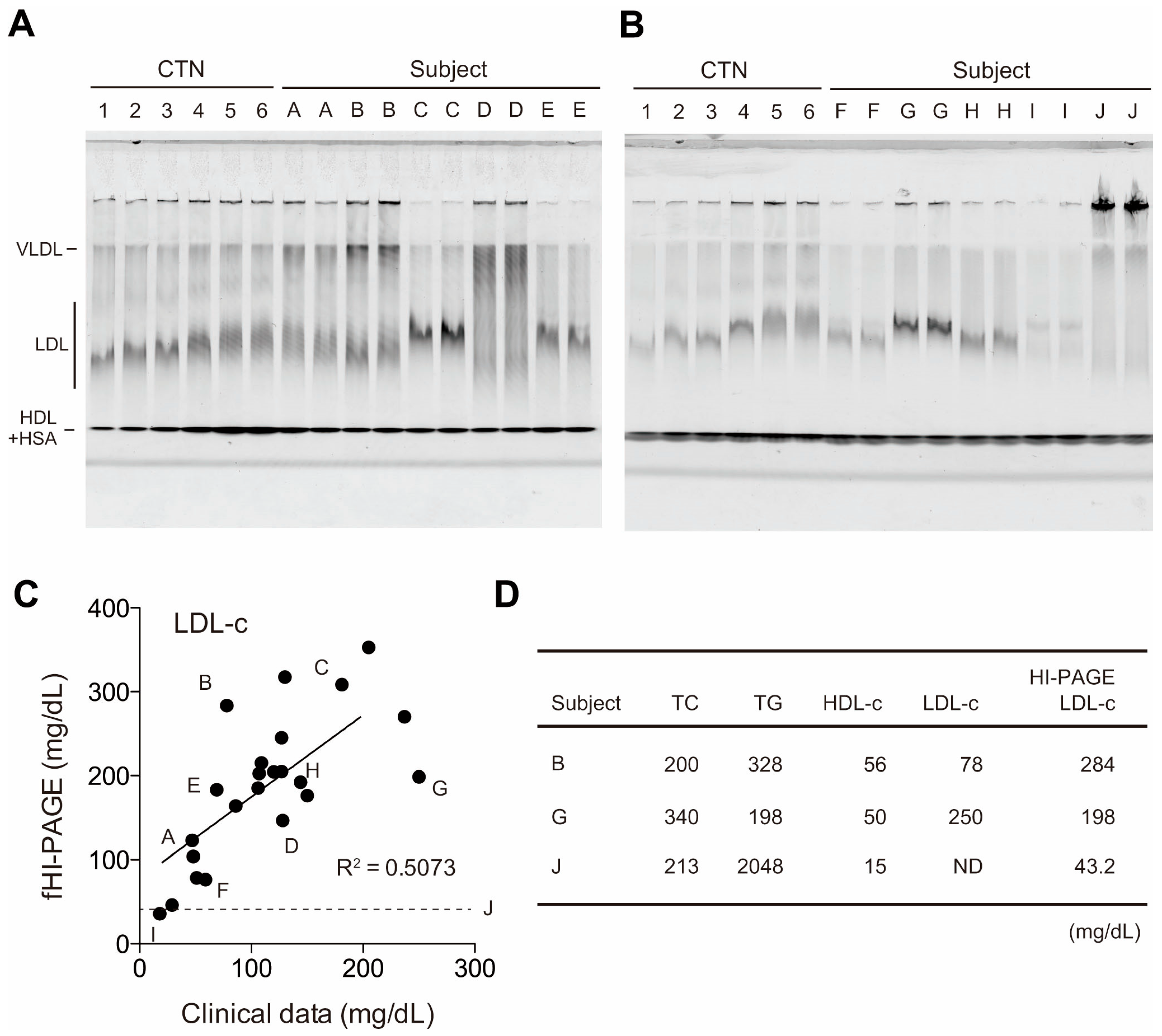 APA StyleTakenaka, Y., Inoue, I., Ikeda, M., & Kakinuma, Y. (2025). A Fluorescence-Based Histidine-Imidazole Polyacrylamide Gel Electrophoresis (HI-PAGE) Method for Rapid and Practical Lipoprotein Profiling and LDL-C Quantification in Clinical Samples. Biomedicines, 13(10), 2560. https://doi.org/10.3390/biomedicines13102560
