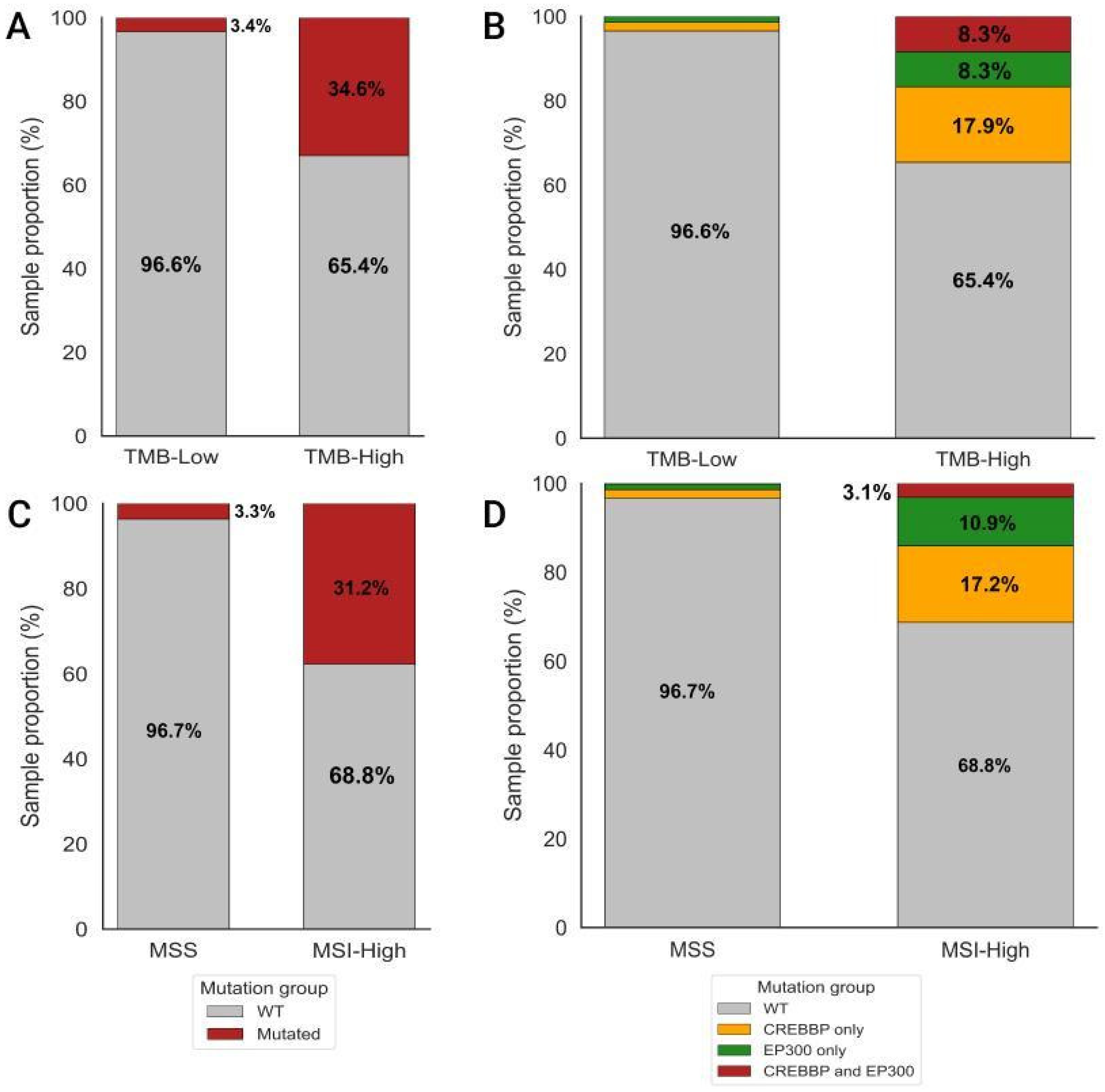 3.2. Analysis of Differences in TMB and MSI Values Between CREBBP and/or EP300 Mutant and WT Samples