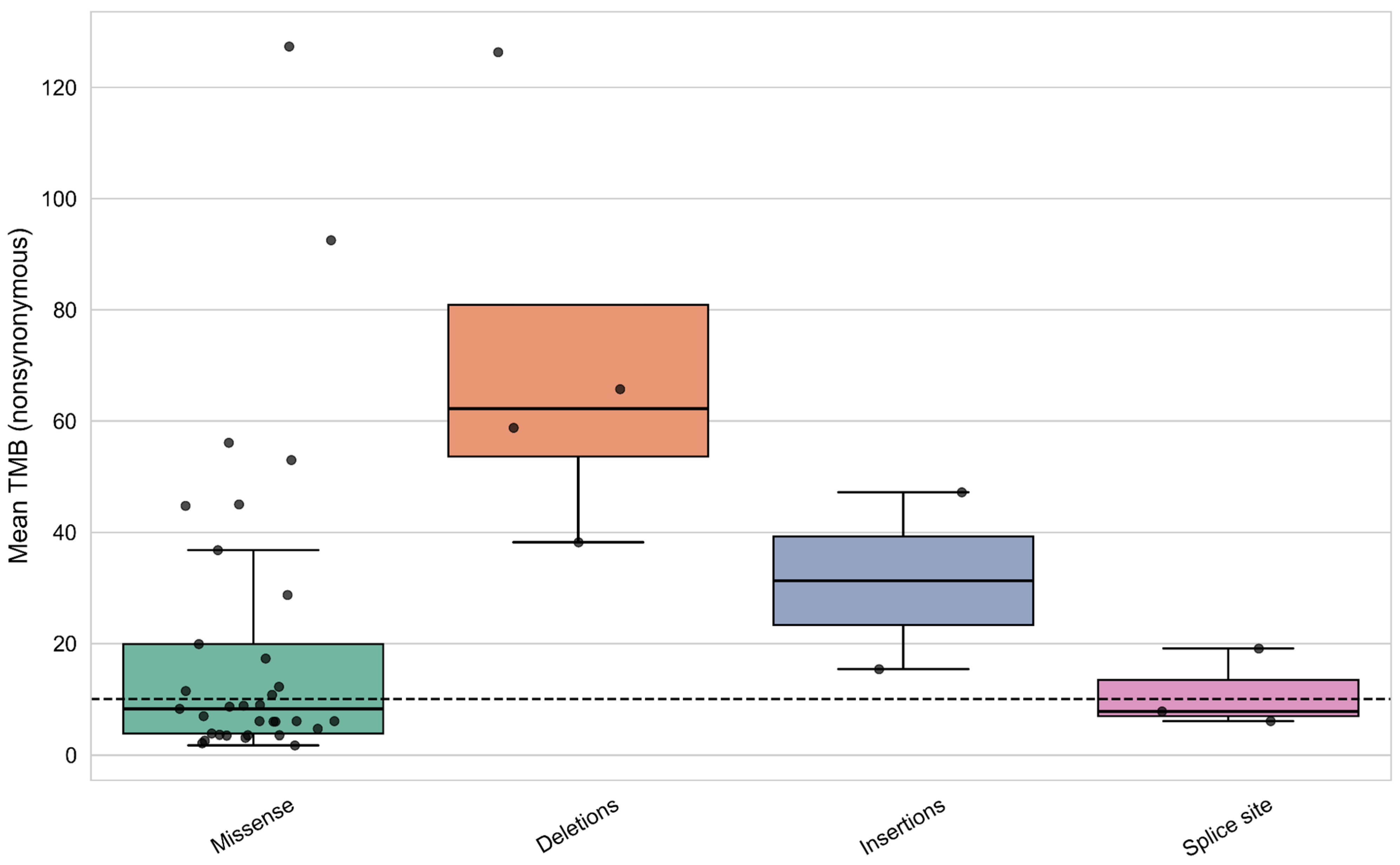 - Swat, W.; Kumar, D.; Boyle, T.A.; Dalton, E.; Comer, S.; Solomon, J.; Golem, S.; Eyring, K.R.; Baskovich, B.; Vashisht, A.; et al. Distributional range of tumor mutational burden (TMB) across multiple cancer types emphasizing the importance of different cutoff values in different tumor types for clinical interpretation: A consensus statement from the SEQUOIA consortium. J. Clin. Oncol. 2023, 41, 2615. [Google Scholar] [CrossRef]