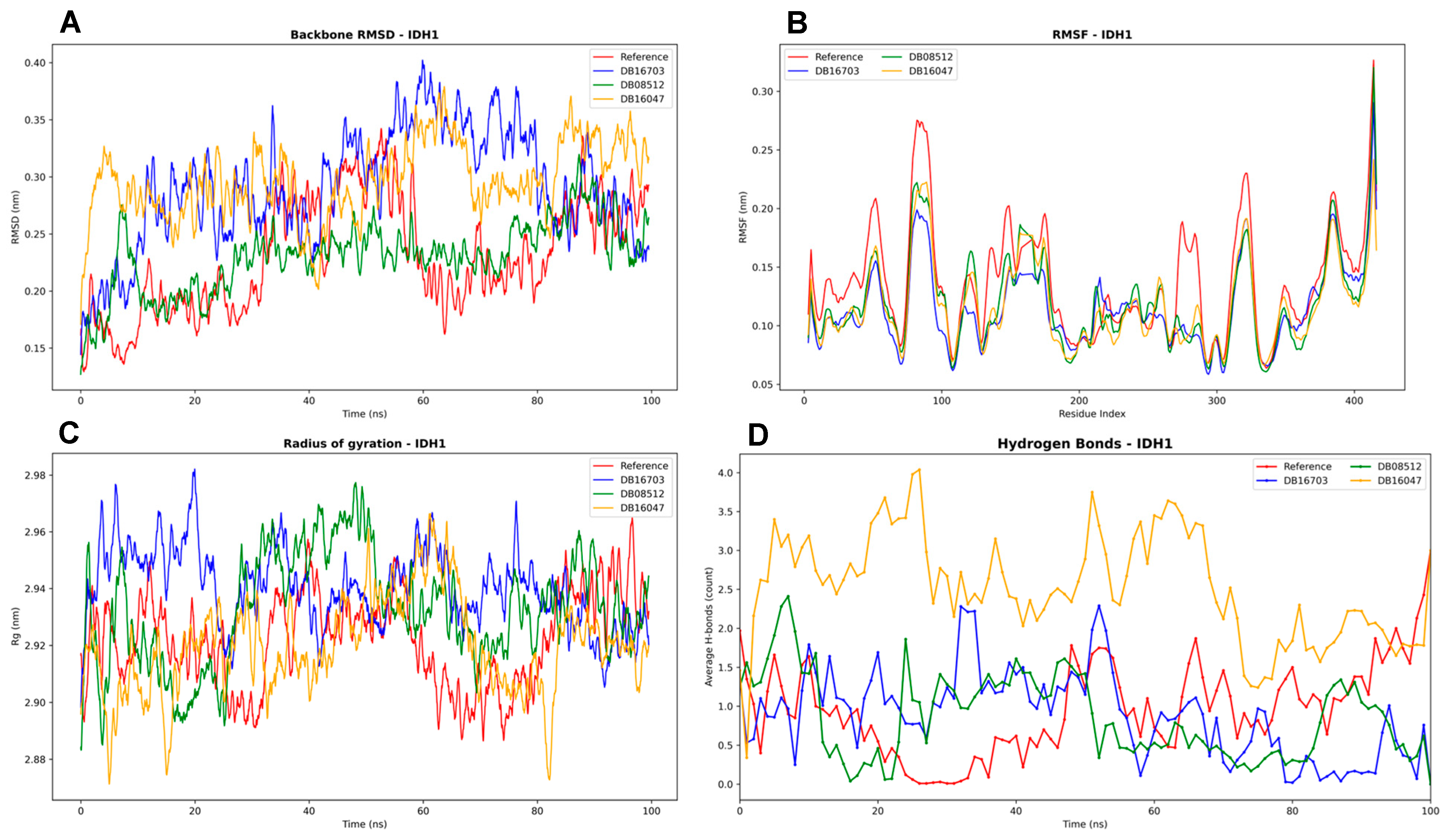 | IDH1 R132H mutant | BDBM389289 | −11.09 | ASN-271B, SER-280B, VAL-281B | LEU-120A, TRP-124B, ILE-128B, ILE-130B, VAL-255A, ALA-258A, ALA-258B, VAL-276A, GLN-277A, VAL-281A, VAL-281B |