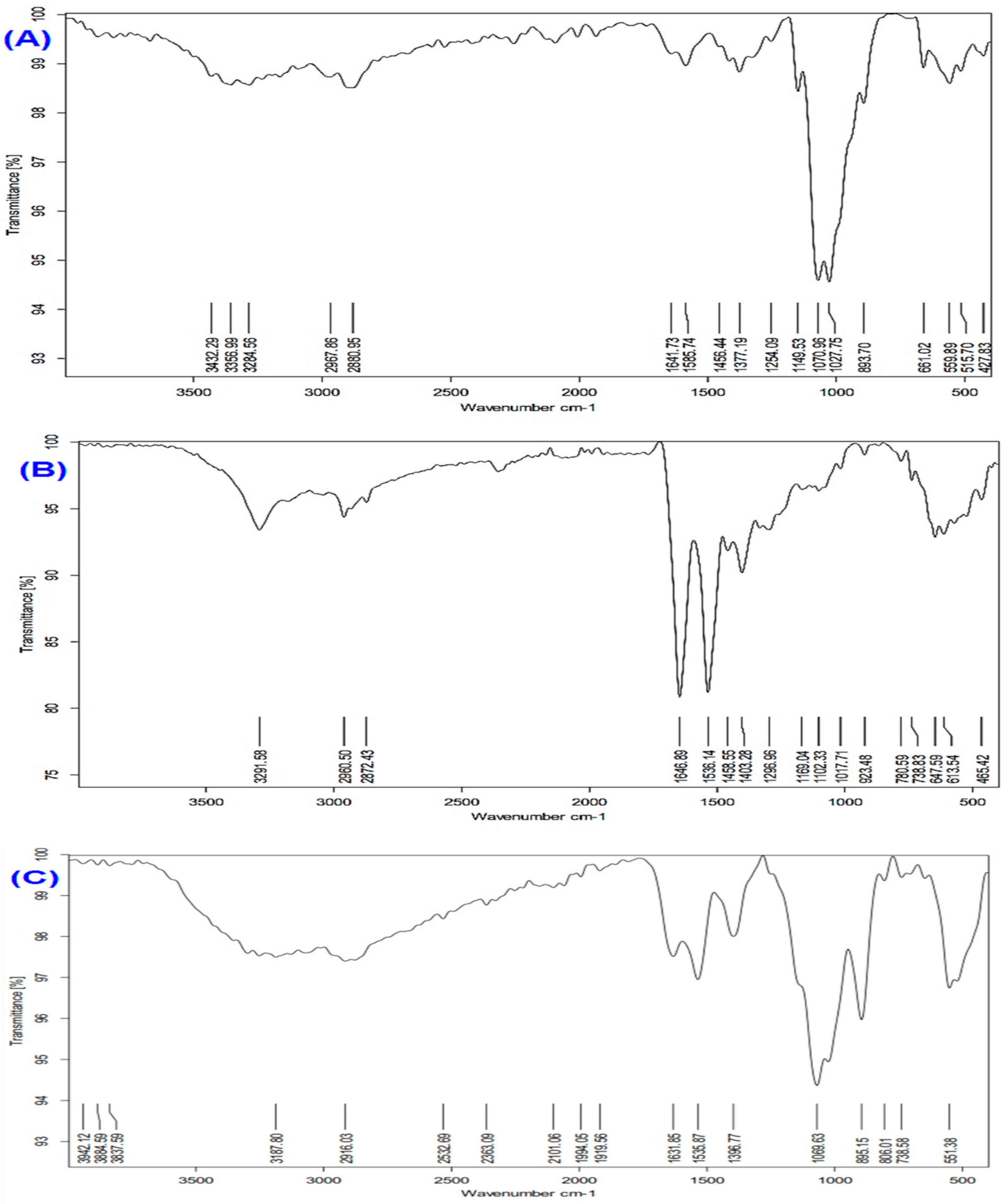 3.2. FTIR Spectral Characterization of Chitosan, Melittin, and Melittin Nanoparticles