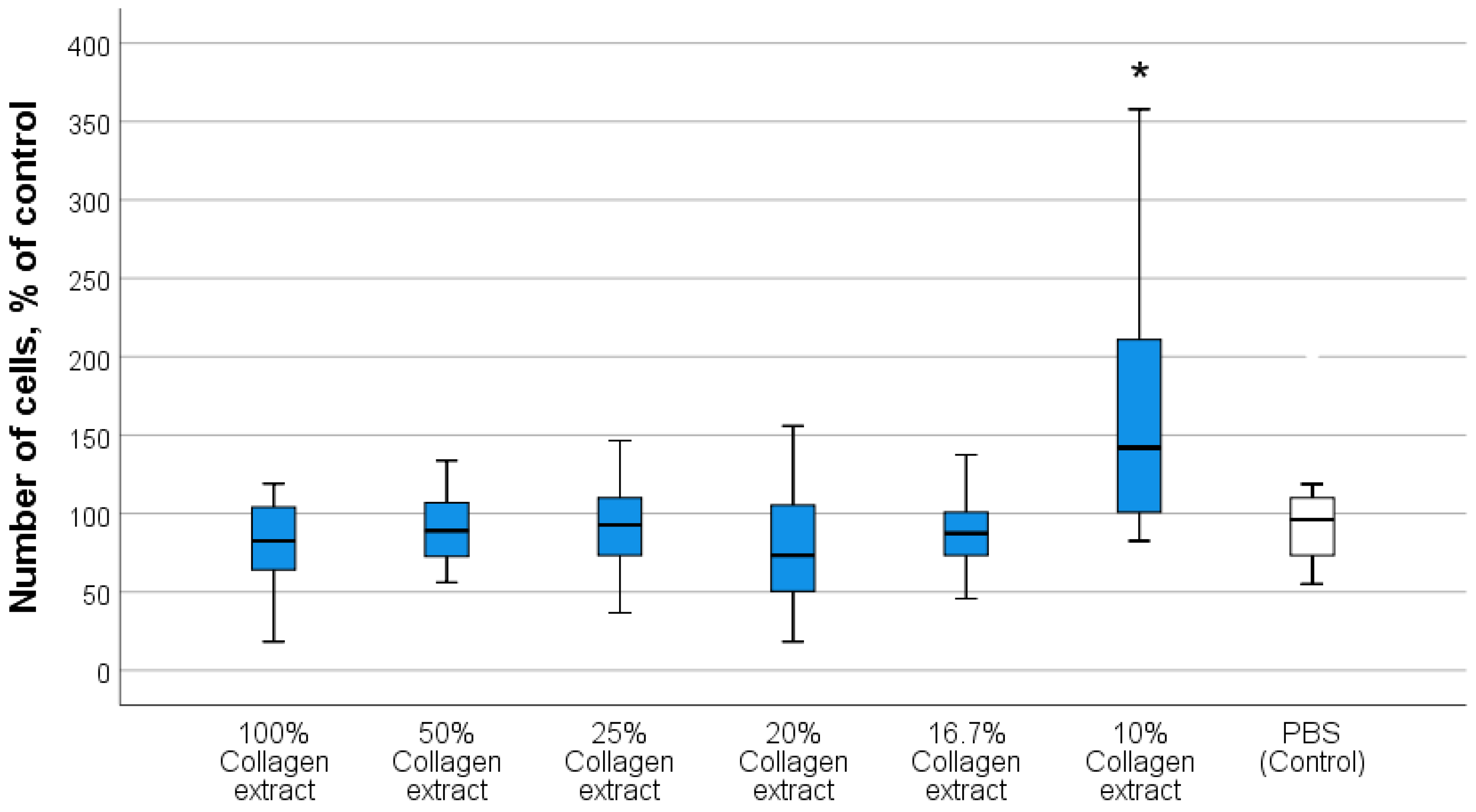 3.2.1. Optimal Concentrations of Composite Components Stimulating Human Fibroblast Activity