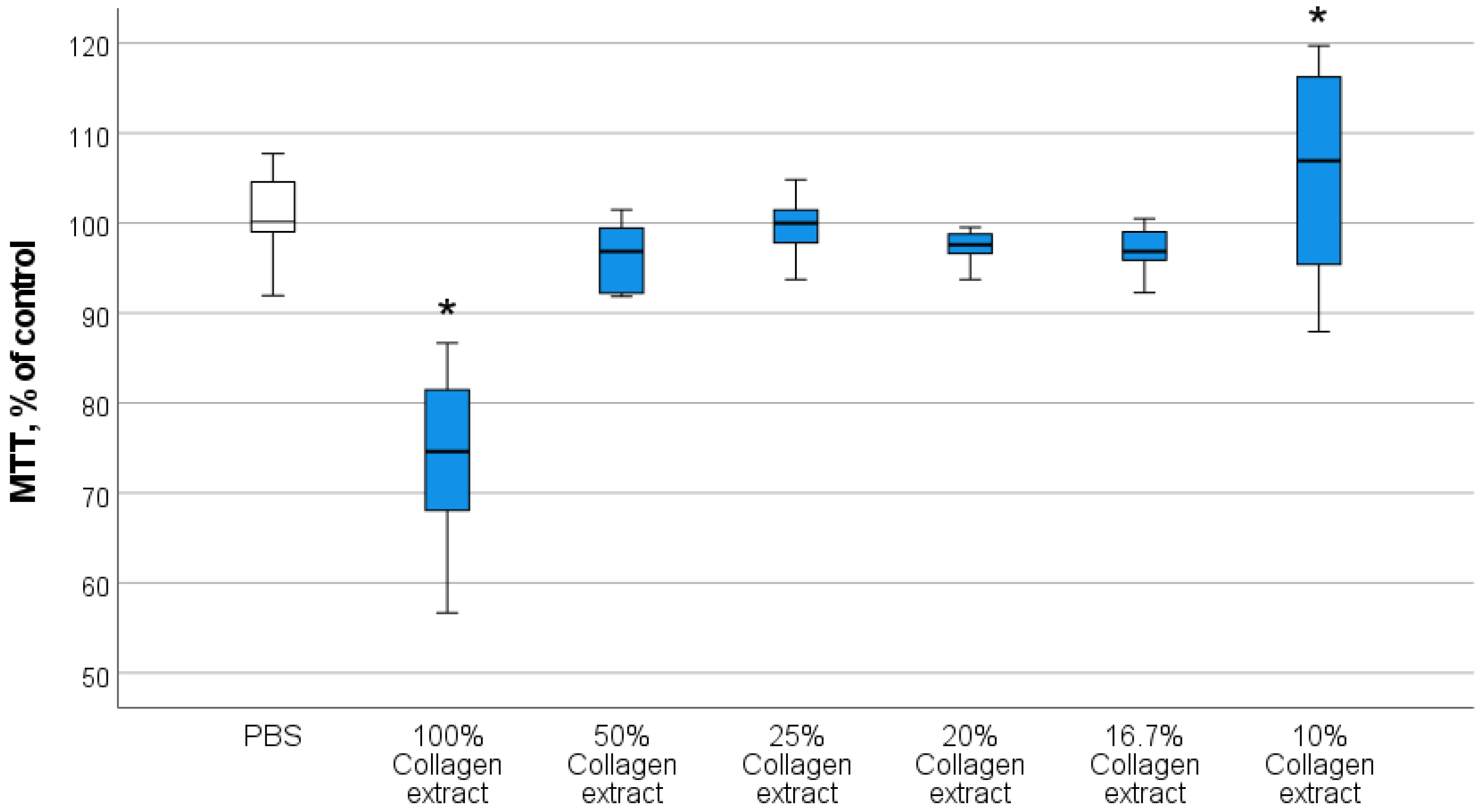 - Silina, E.V.; Stupin, V.A.; Zolotareva, L.S.; Komarov, A.N. Native collagen application in clinical practice for chronic wounds treatment. Pirogov Russ. J. Surg. 2017, 9, 78–84. (In Russian) [Google Scholar] [CrossRef] [PubMed]
