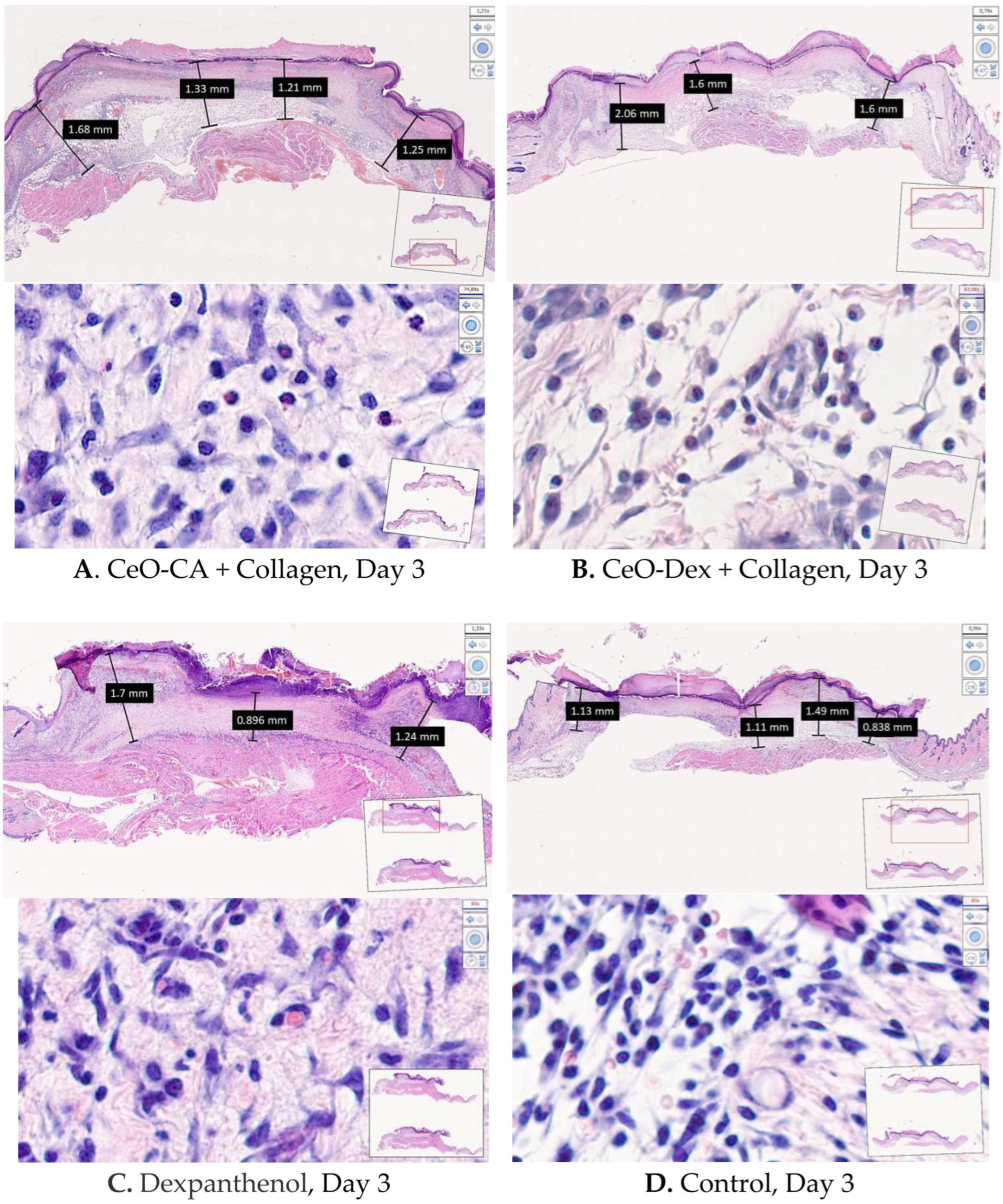2.5. In Vivo Studies of Collagen–Nanocerium Hydrogel Drug Prototypes to Determine Efficacy in an Animal Model of Acute Full-Thickness Skin Wound